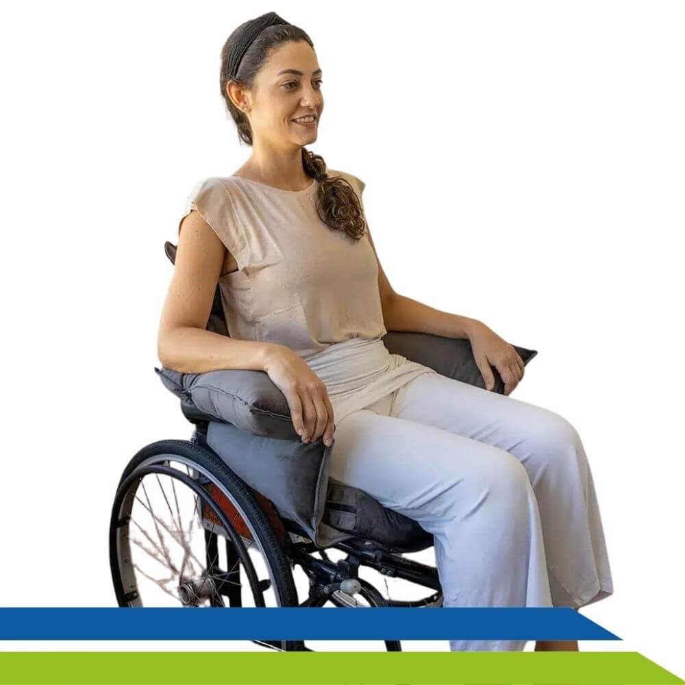 Saiba mais [+]Cuidado e conforto em um só produto, a almofada foi projetada para melhorar a postura do usuário, proporcionando um alinhamento adequado da coluna. Ela também oferece apoio para os braços, o que contribui para um maior bem-estar. Adicionalmente, ao aliviar a pressão em pontos específicos, a almofada auxilia na prevenção de dores e desconfortos decorrentes do uso prolongado da cadeira de rodas.