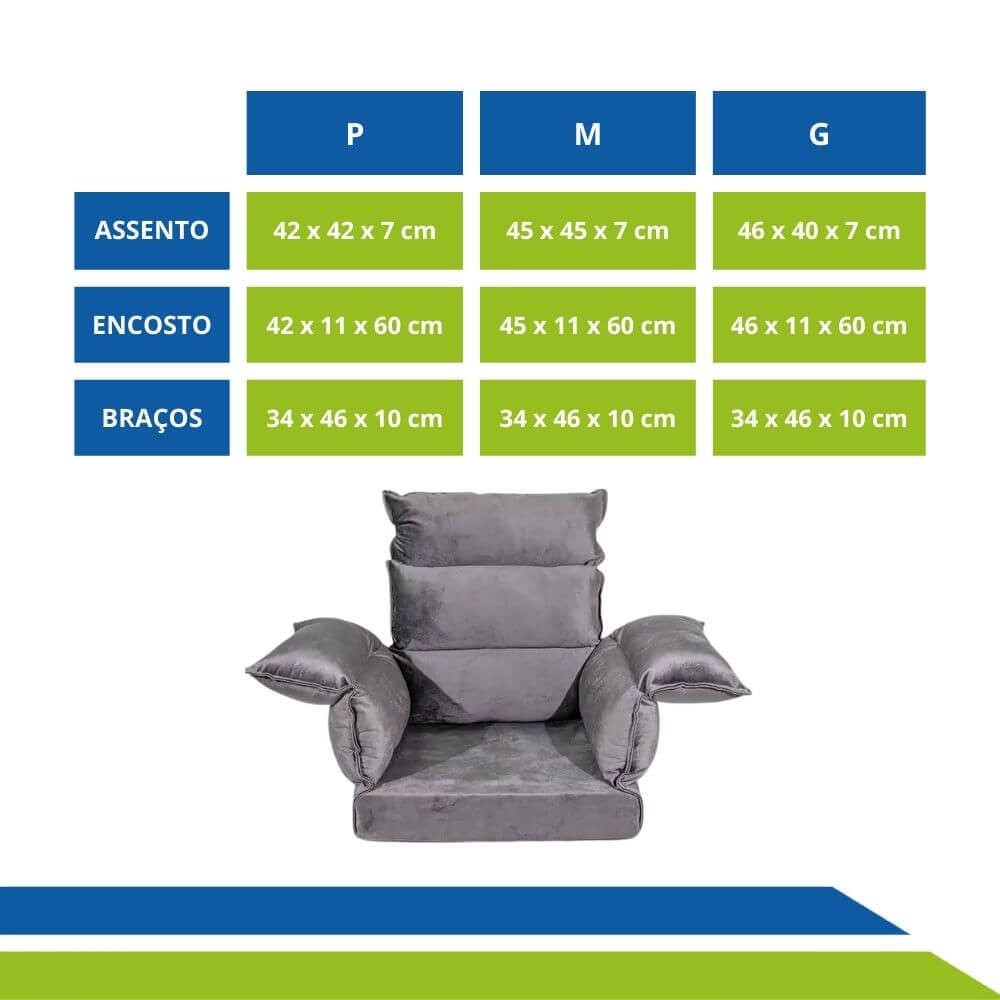 Seu enchimento em fibra siliconada antialérgica oferece uma sensação agradável ao sentar, enquanto a capa de poliéster proporciona um toque suave, evitando atritos e alergias na pele.