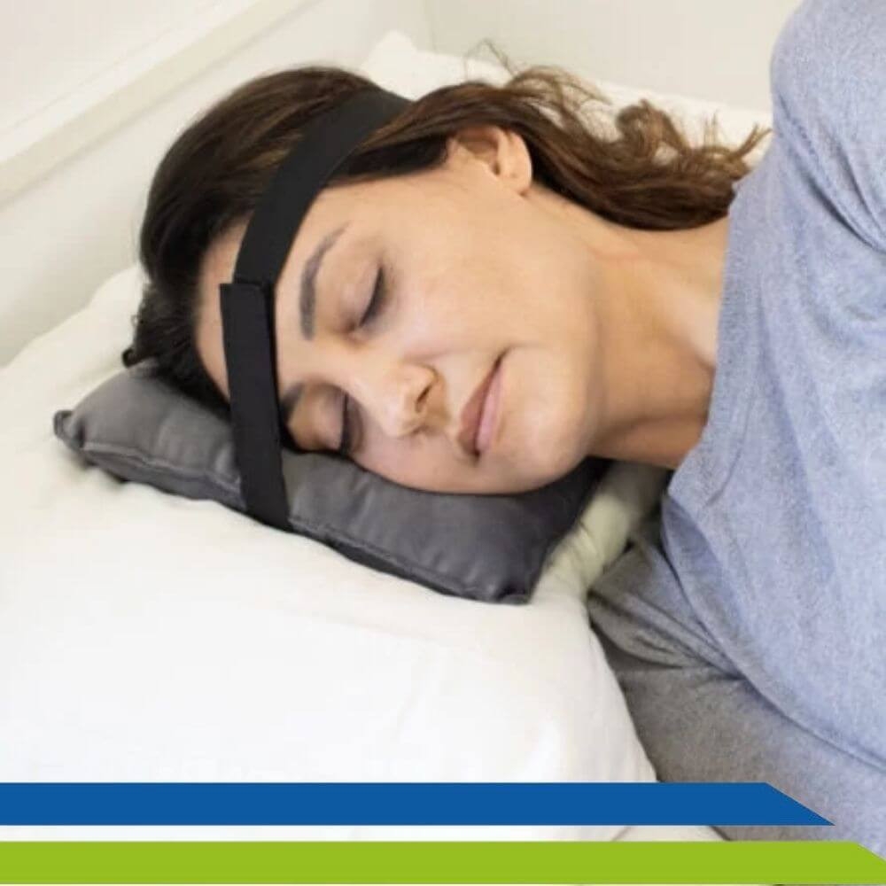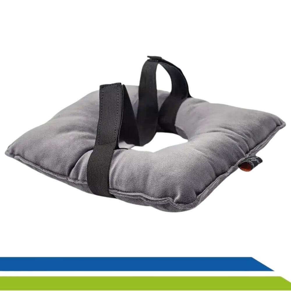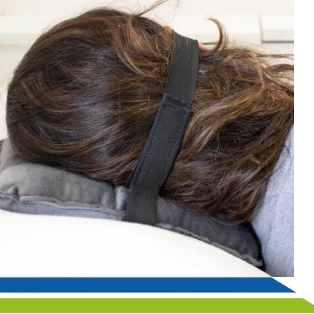 A faixa garante que a almofada permaneça devidamente posicionada durante seu uso.