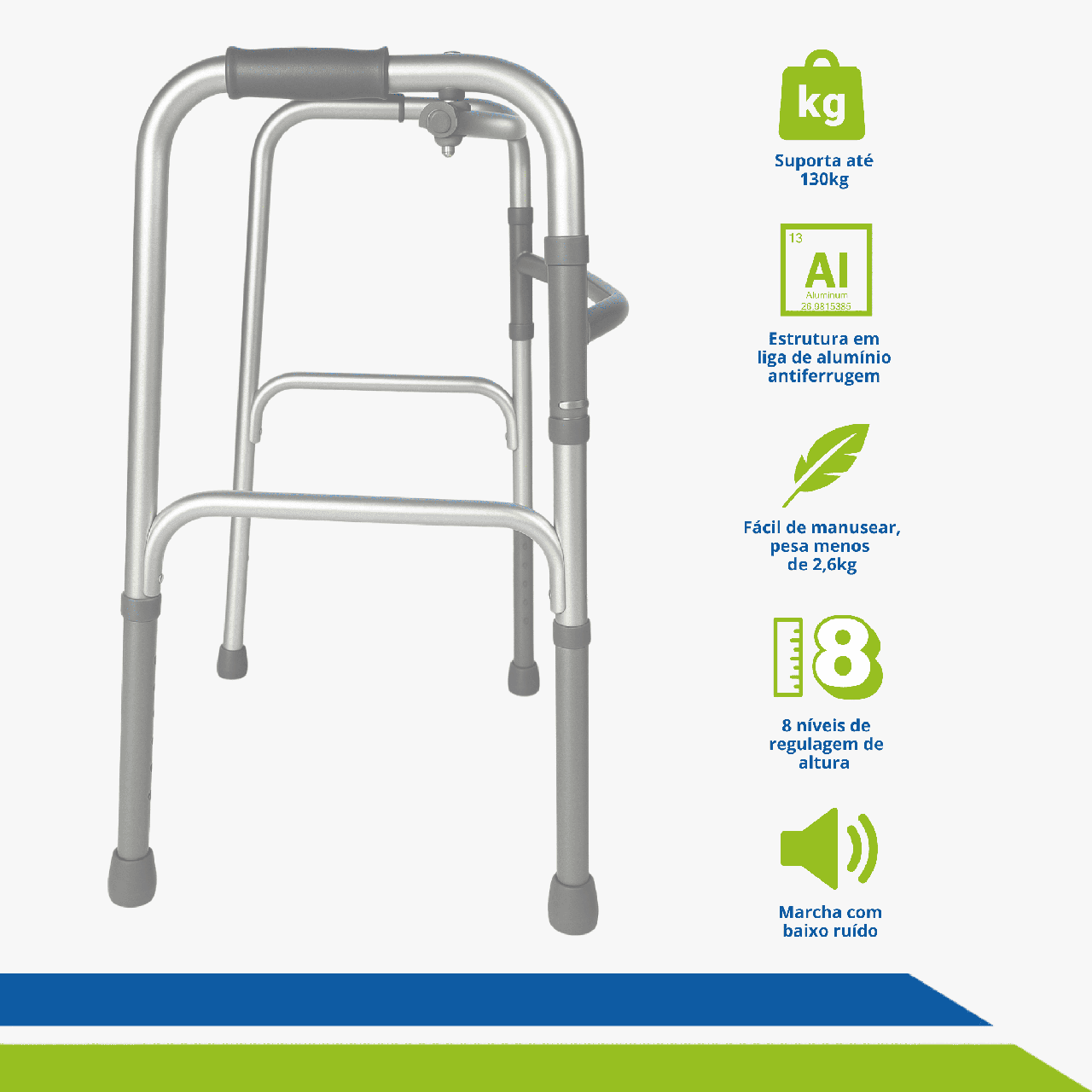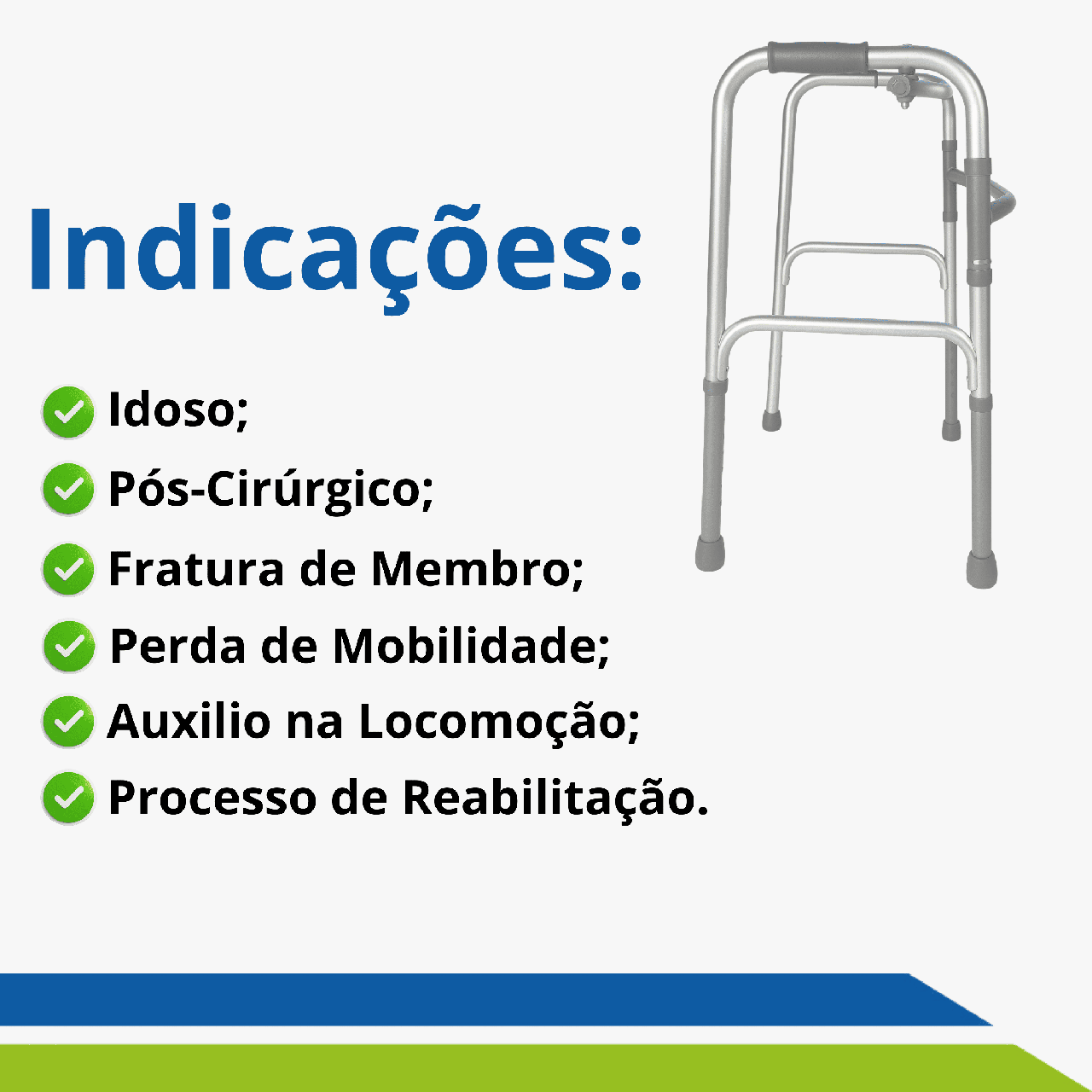 Tenha mais confiança, estabilidade e autonomia com este andador de alumínio leve, resistente e super prático! Ideal para idosos, pessoas em pós-cirúrgico ou em processo de reabilitação, ele oferece o suporte perfeito para quem precisa de mais segurança na locomoção.