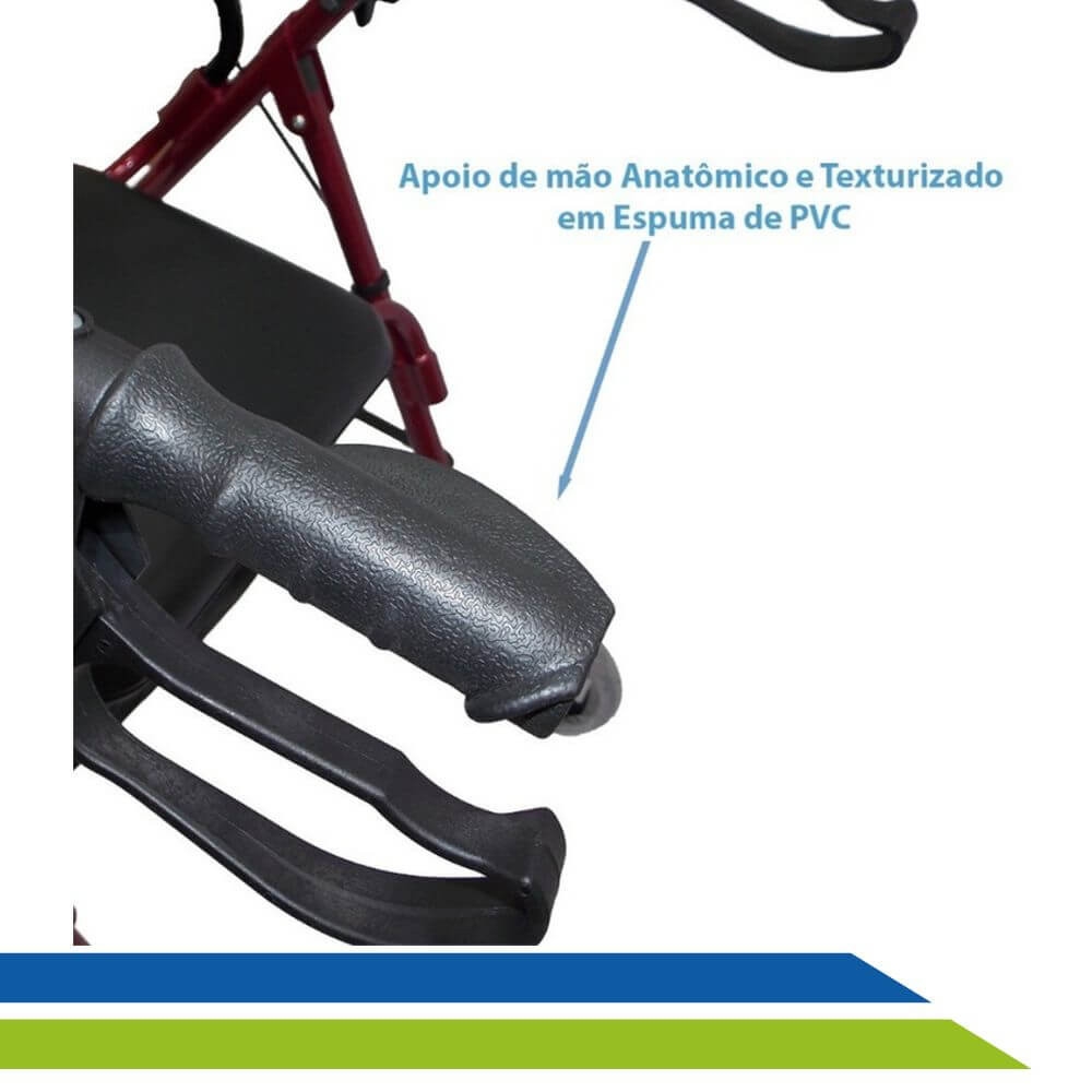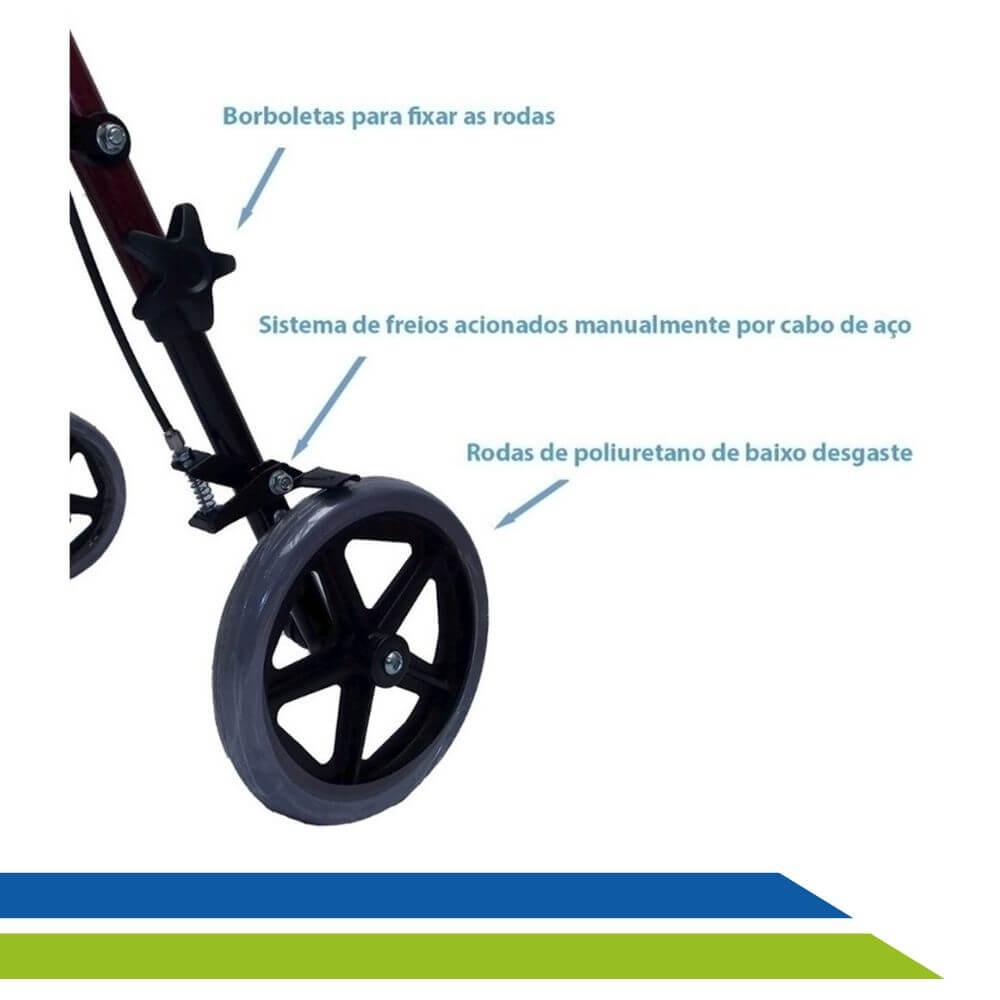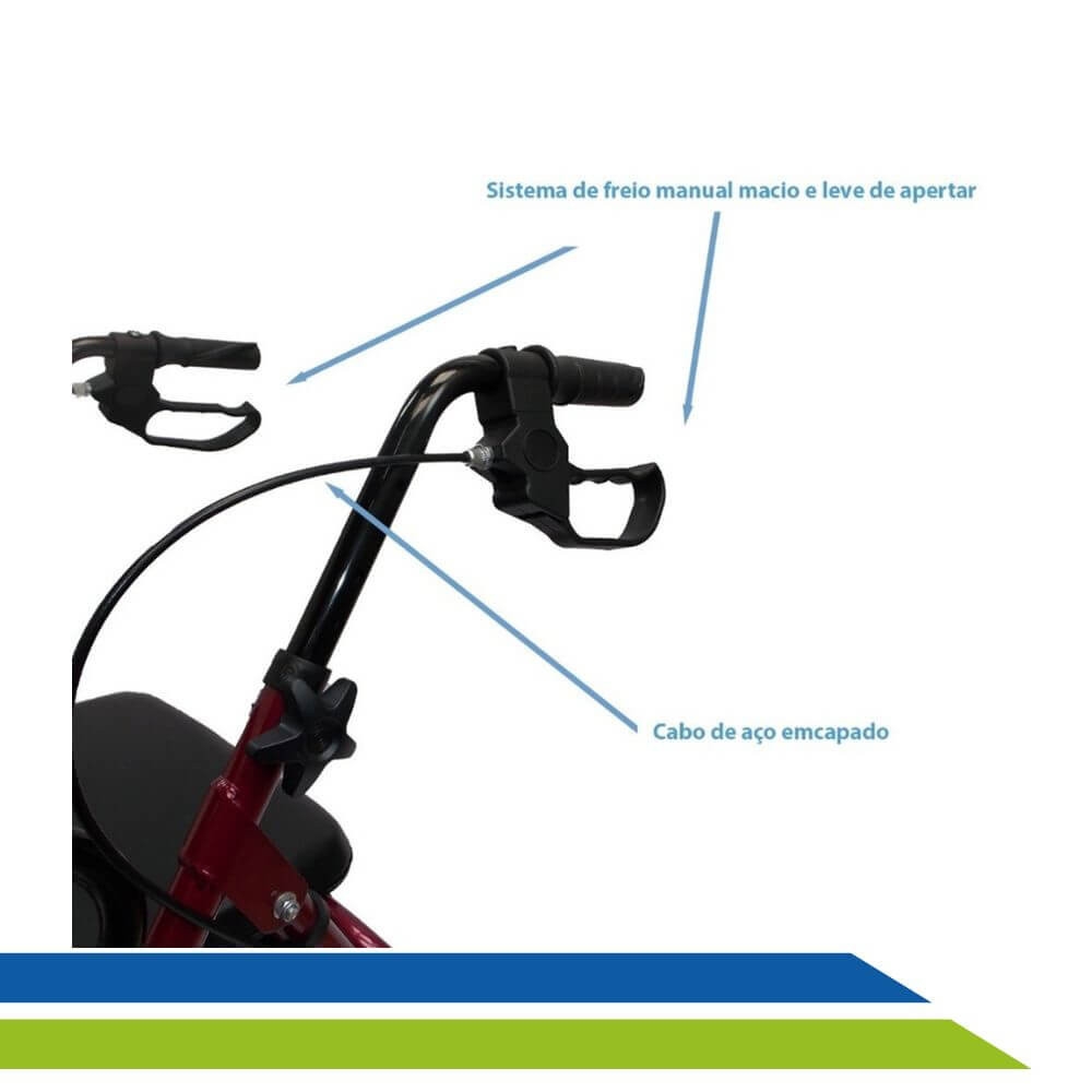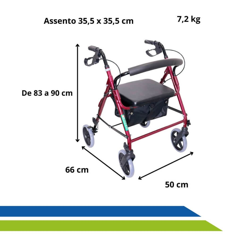 Um excelente investimento para quem procura oferecer o que há de melhor em conforto e segurança, por ser dobrável, o andador possui fácil transporte, podendo ser colocado dentro do porta-malas do carro, além de contar com 6 pontos de regulagem, Muito importante que ao sentar para repouso o freio deva ser acionado garantindo assim melhor segurança.
