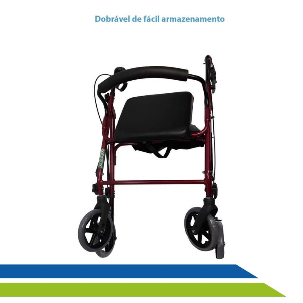 Um excelente investimento para quem procura oferecer o que há de melhor em conforto e segurança, por ser dobrável, o andador possui fácil transporte, podendo ser colocado dentro do porta-malas do carro, importante que ao sentar para repouso o freio deve ser acionado garantindo assim melhor segurança.
