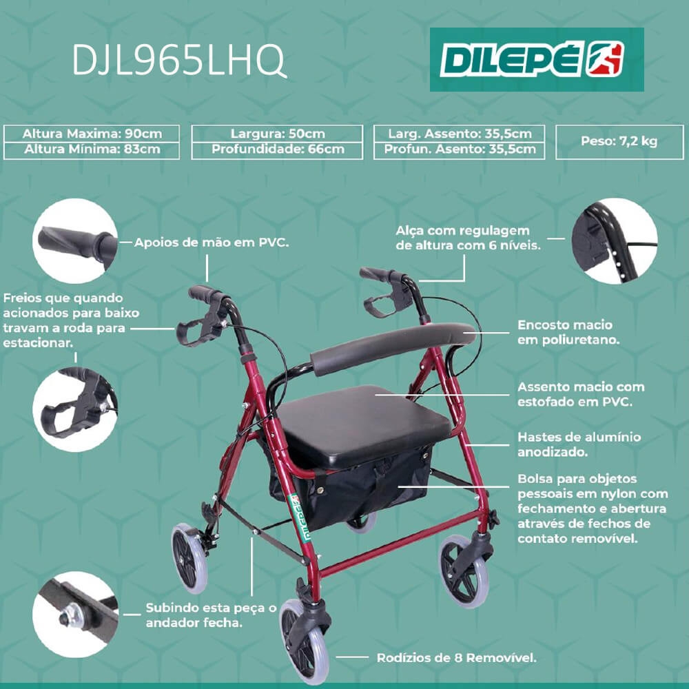 O Andador com Rodas e Assento da Dilepé foi pensado em atender as necessidades de pessoas com dificuldades de equilíbrio e locomoção, que desejam realizar as atividades diárias com maior independência conforto, segurança e liberdade.