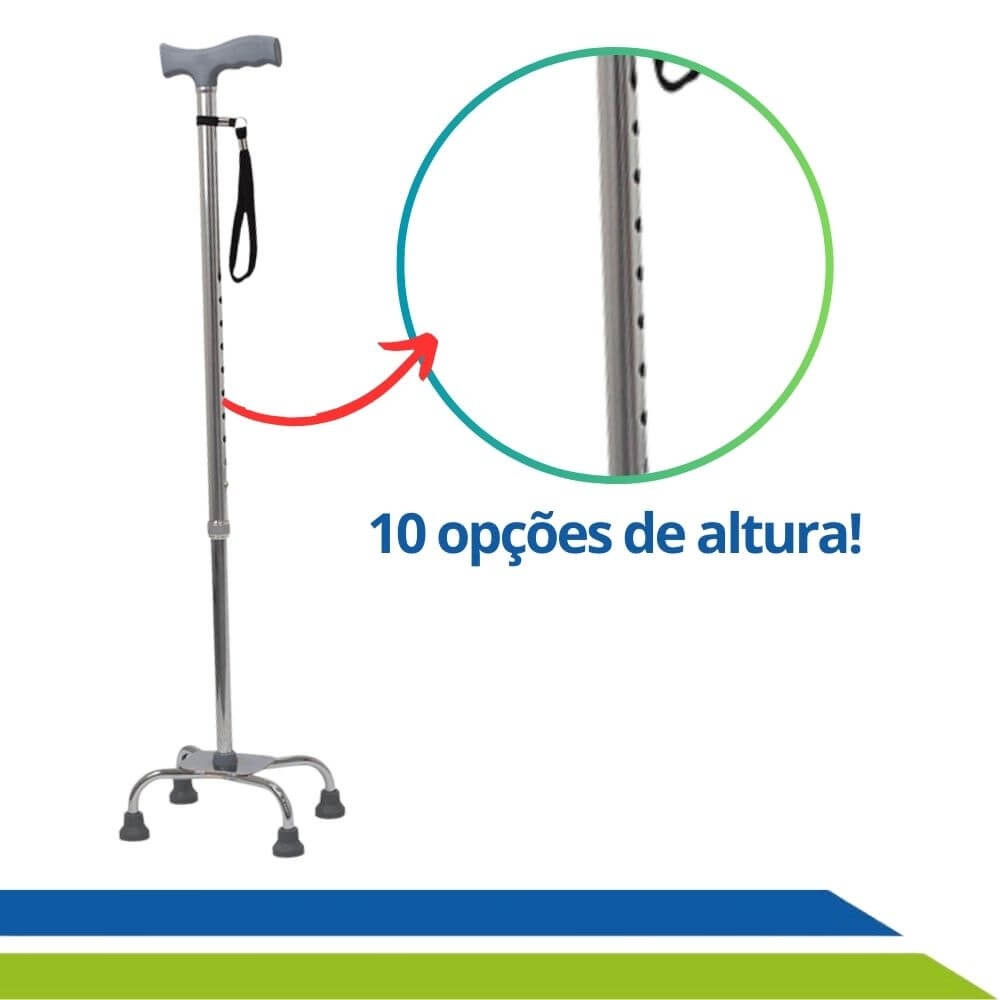 Apresentamos a Bengala 4 Pontas Hidrolight, uma bengala de qualidade excepcional que oferece suporte confiável e conforto durante a locomoção. Possui regulagem de altura por botão, o que também a torna extremamente prática para o dia a dia. Sua construção robusta e design inovador, mostram que este bastão ortopédico de quatro apoios foi projetado para atender às necessidades dos seus usuários da melhor maneira possível.