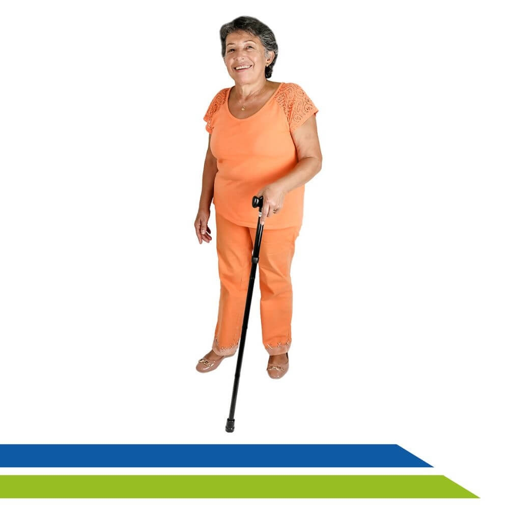 A Bengala de Alumínio Dobrável é indicada para descarga do membro inferior e bacia. Com ponteira antiderrapante e apoio de mão é extremamente confortável e garante caminhadas seguras ao paciente.
