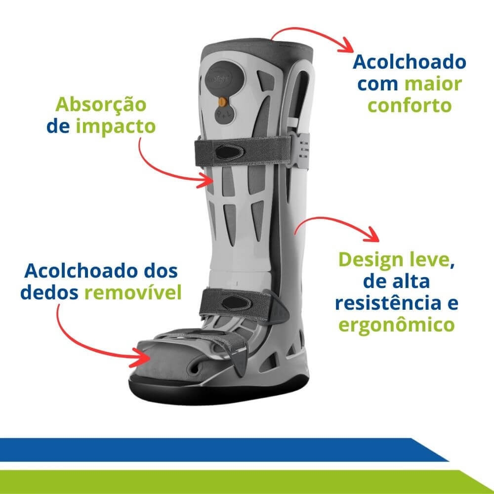 Desenvolvida com materiais de alta qualidade e tecnologia a Bota Ortopédica Pneumática Safe Move, foi projetada para oferecer suporte e conforto, alinhados com um design ergonômico e leve garantindo mobilidade sem restrições.
