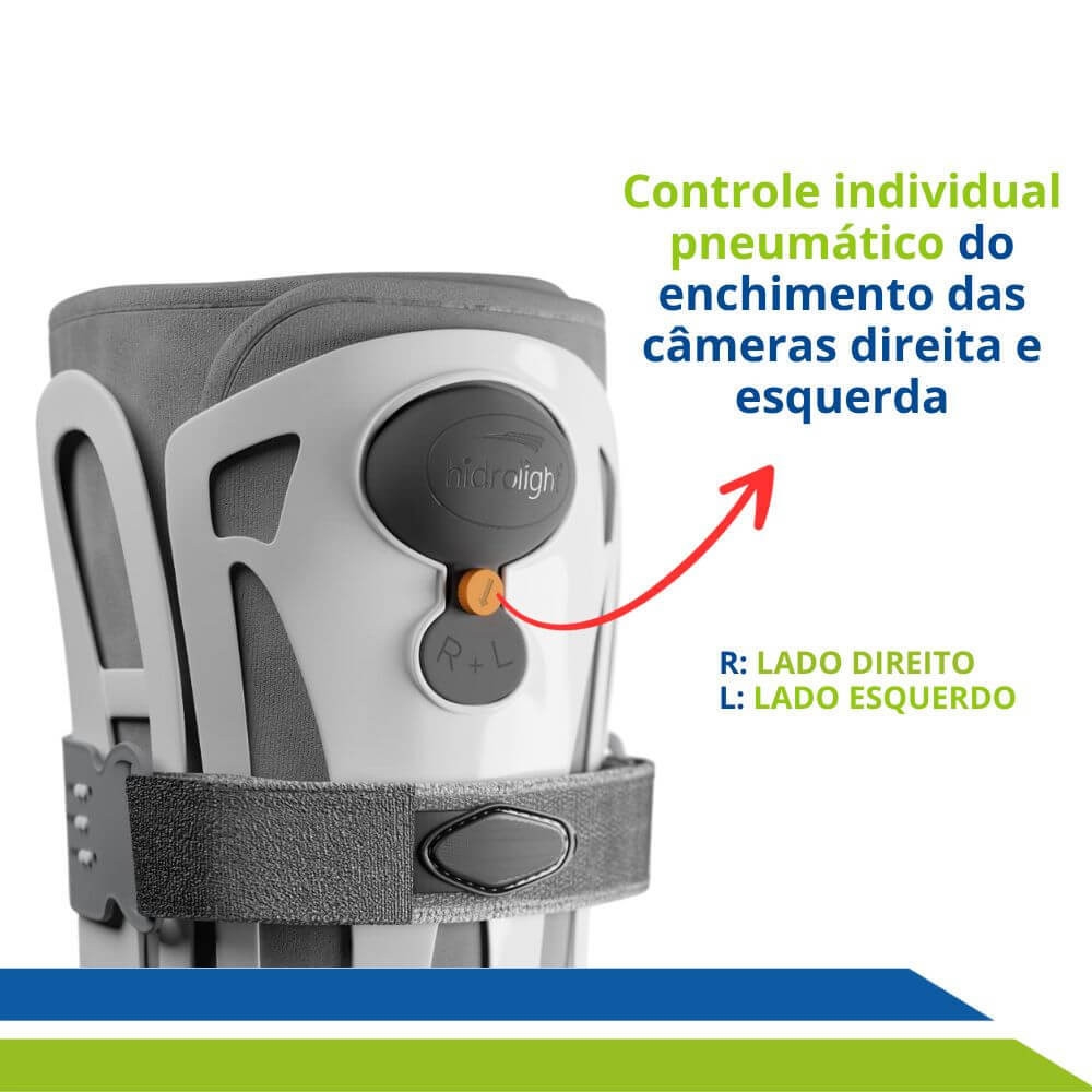- Sistema de Direcionamento de Ar: Possui controle individual do enchimento das bombas de ar, para os lados direito e esquerdo, atuando como um imobilizador personalizados de ampla extensão.