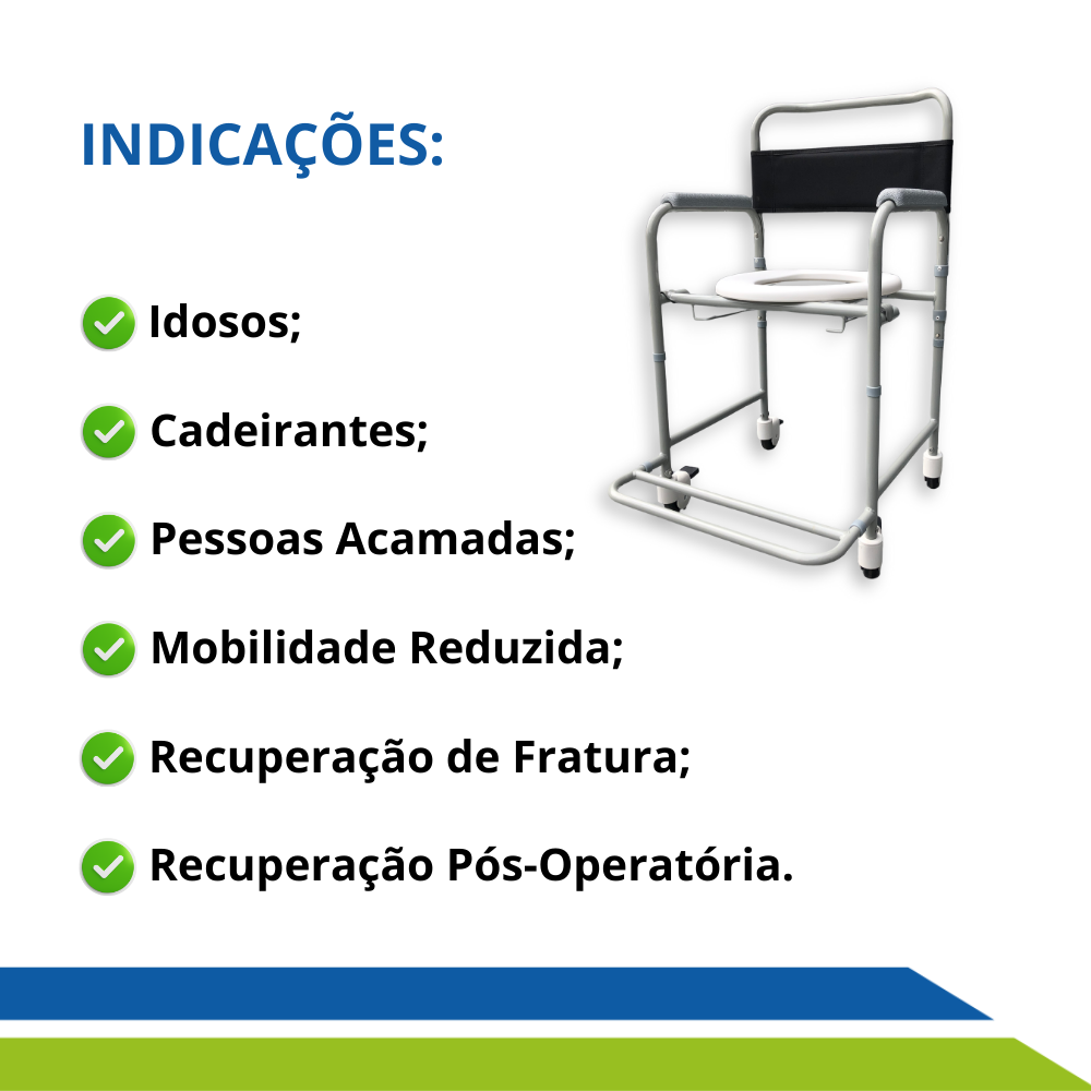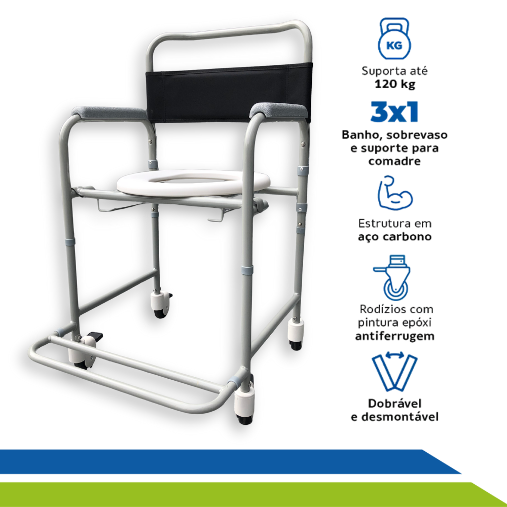 Saiba mais [+]A Cadeira de Banho D30 é a solução ideal para quem busca mobilidade, praticidade e segurança no cuidado diário. Seu design totalmente dobrável facilita o armazenamento em qualquer espaço, enquanto o exclusivo giro 360º sobre o próprio eixo garante movimentação ágil mesmo em ambientes pequenos.