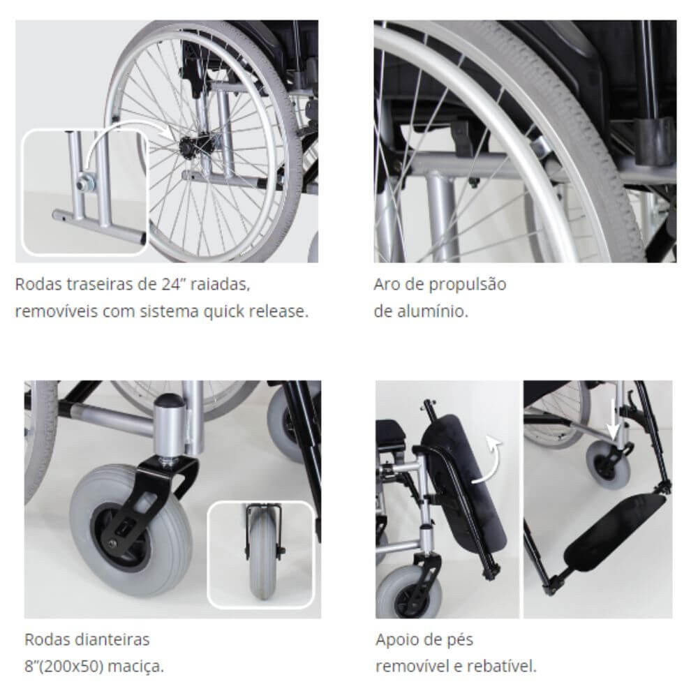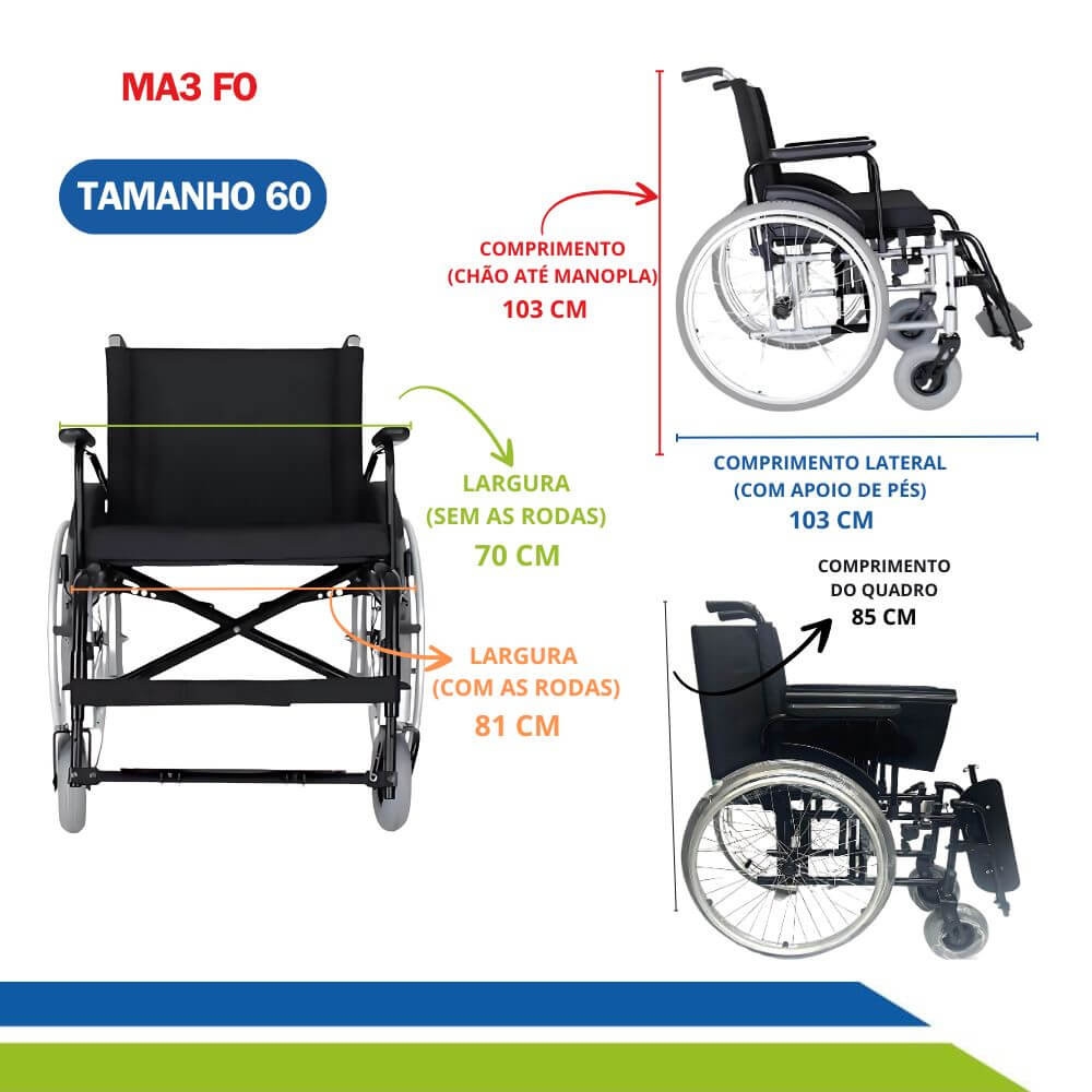 A Cadeira de Rodas MA3FO é constituída por duas partes laterais, unidas por meio de tubos em aço no formato de duplo X tubular, possui estrutura dobrável com fechamento lateral, sua estrutura é em Aço Carbono, o que garante a resistência e durabilidade, além de garantir conforto redobrado, pois conta com almofada no assento com espuma de 5 cm, e estofamento de encosto acolchoado em nylon de alta resistência proporcionando conforto para o dia a dia.