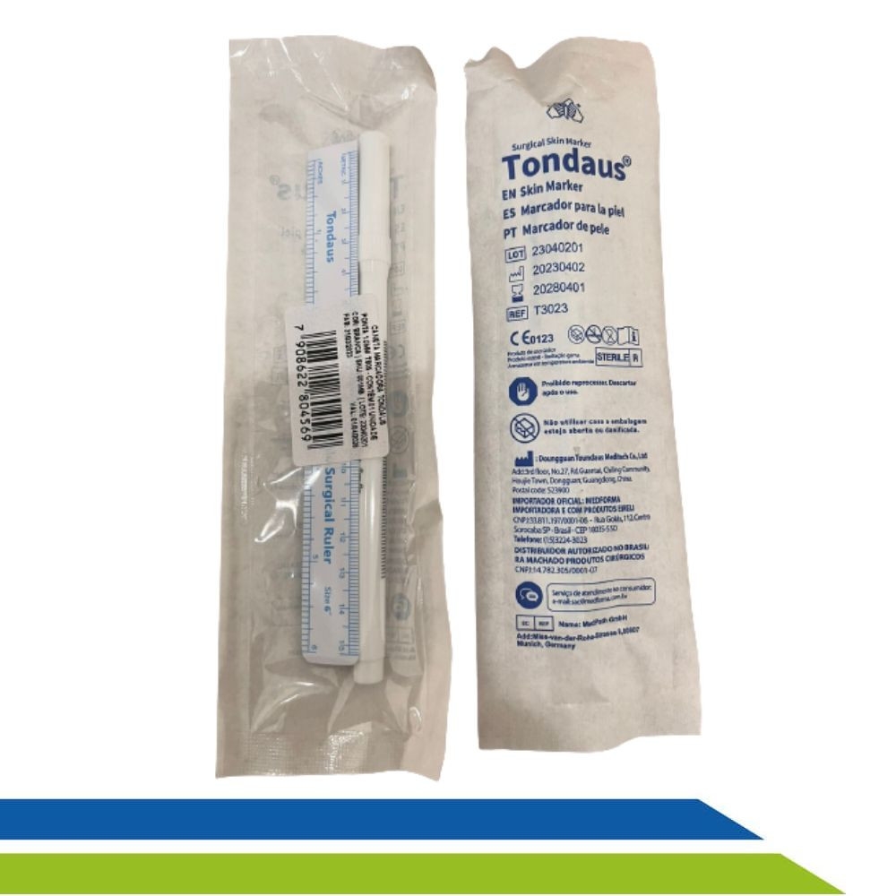 Projetada para profissionais da área da saúde, a Caneta de marcação cirúrgica Tondaus, possui um traço firme, resistente e confiável, garantindo segurança e precisão para os procedimentos cirúrgicos.
