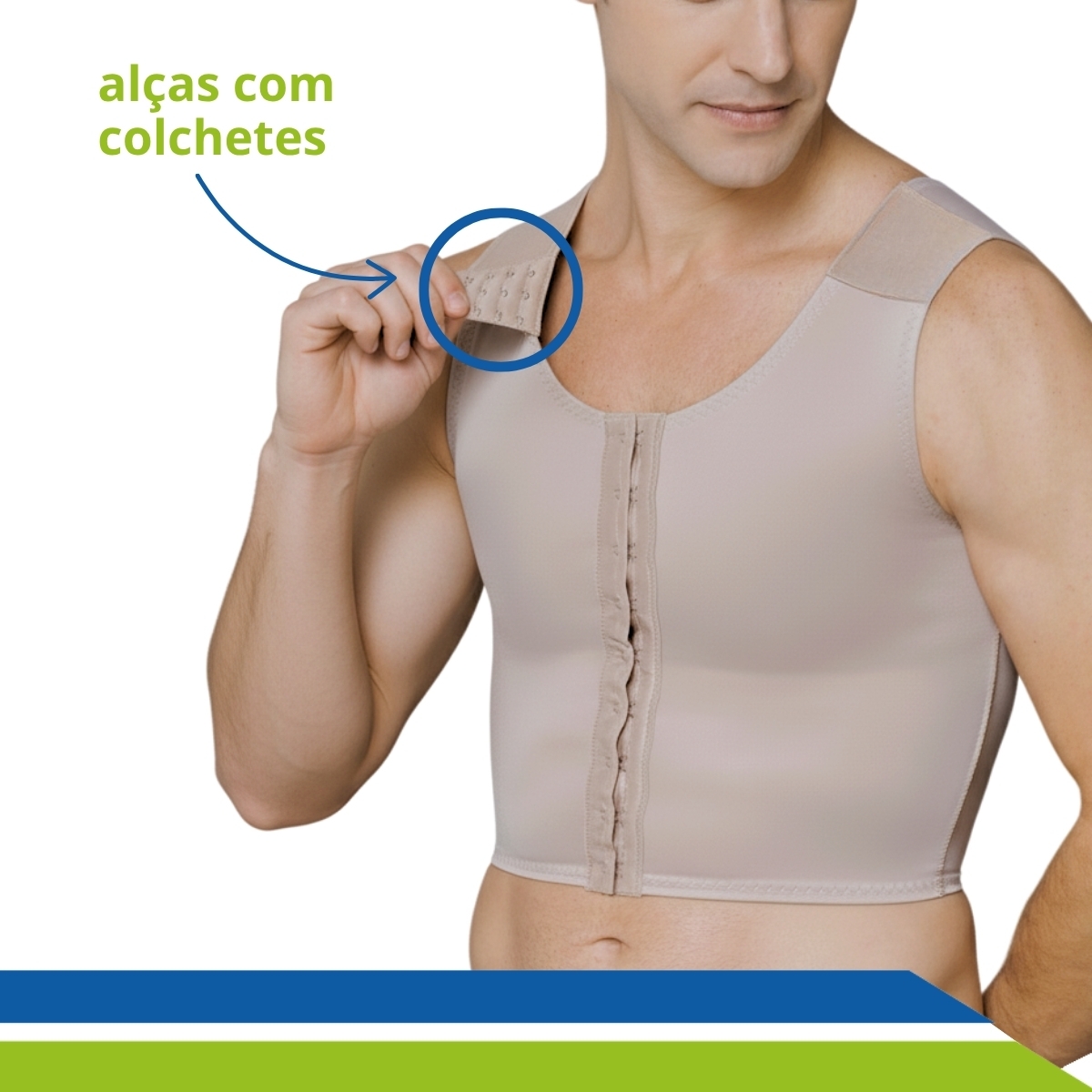 A Cinta Colete Pós-Ginecomastia ativa a circulação sanguínea auxiliando na cicatrização, reduzindo o edema (inchaço) e ativa a eliminação de líquidos adquiridos durante e depois da cirurgia.