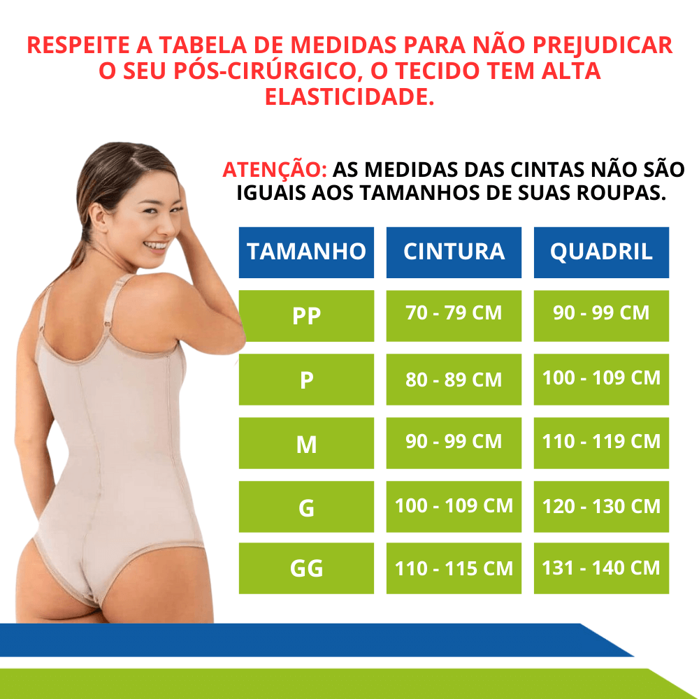 - Compressão ideal: A Cinta exerce a compressão adequada para modelar o corpo e auxiliar na sustentação dos tecidos, contribuindo para um resultado estético mais satisfatório.