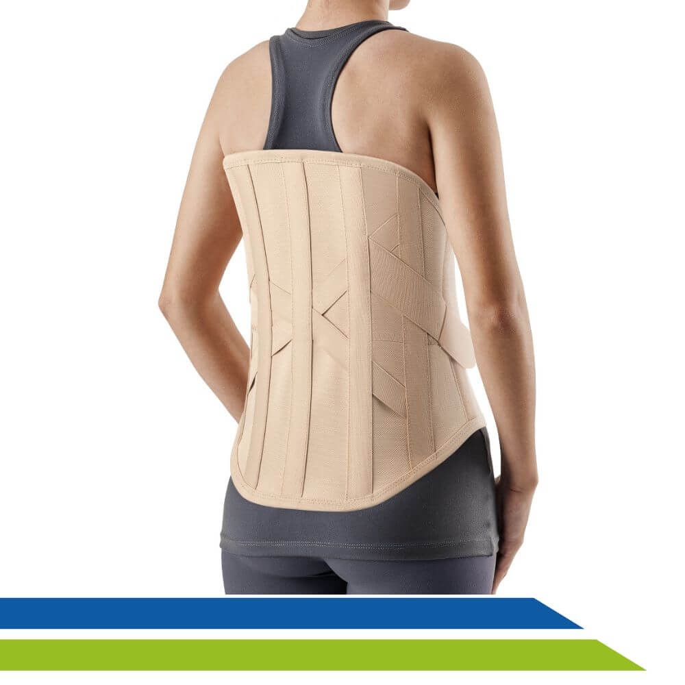 As barbatanas em alumínio garantem a estabilização necessária da região lombossacral ou dorso-lombossacral e podem ser moldadas de acordo com a anatomia do corpo. Possui acabamento em fecho aderente que permite um melhor ajuste do Colete e faixas elásticas, que sobrepostas aumentam a estabilização.