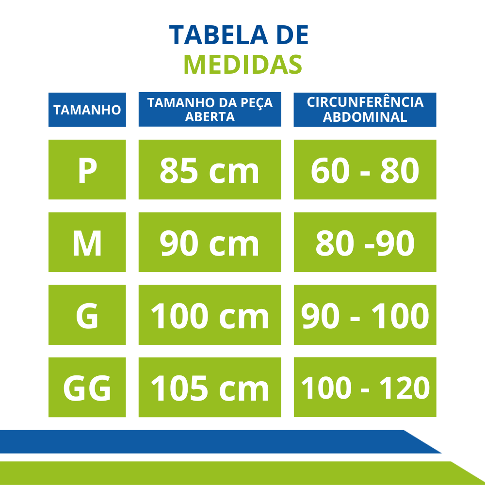 Meça a circunferência da cintura e compare as medidas com a tabela de medidas.