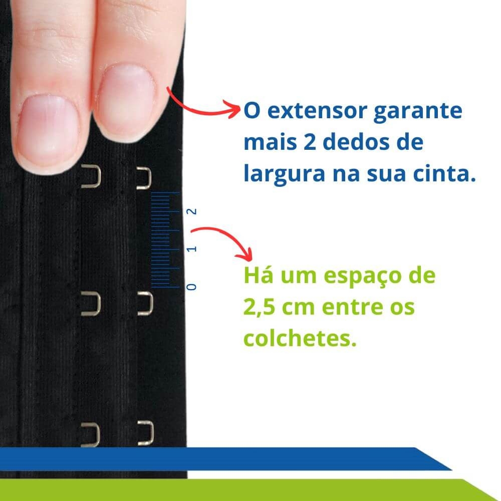 Descubra o conforto e praticidade dos Extensores de Cintas Pós-Cirúrgicas com dupla fileira de colchetes. Desenvolvido para aumentar até dois dedos de largura da sua cinta, também possui variações que permitem estender o comprimento para pessoas altas.