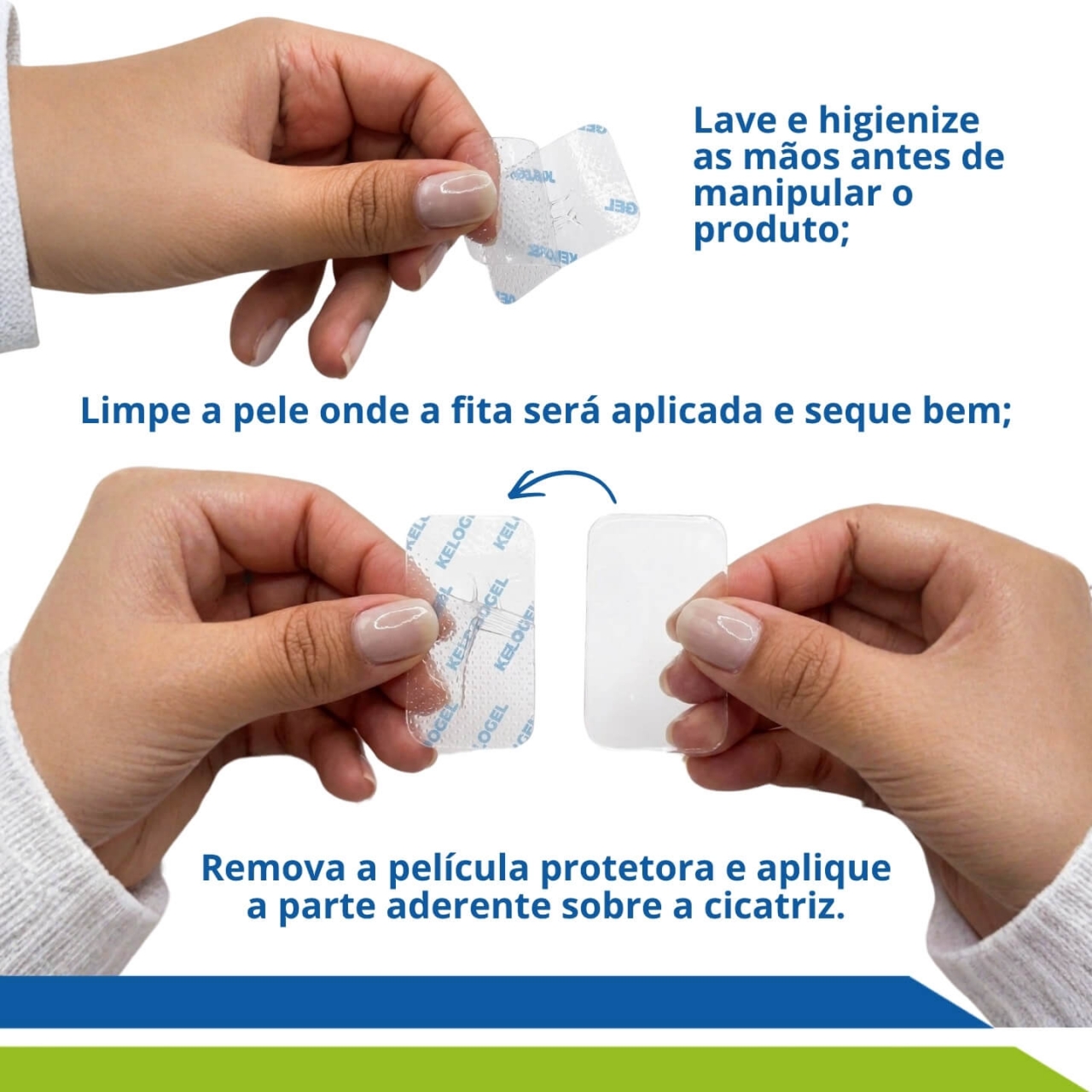 A Fita de Silicone Kelogel é um produto suave que alinha, suaviza, atenua cicatrizes vermelhas e elevadas, decorrente de cirurgias plásticas, acidentes, cortes e queimaduras, fazendo com que o local tratado produza mais líquido, hidratando a pele, e diminuindo a espessura de cicatrizes novas e até mesmo antigas.