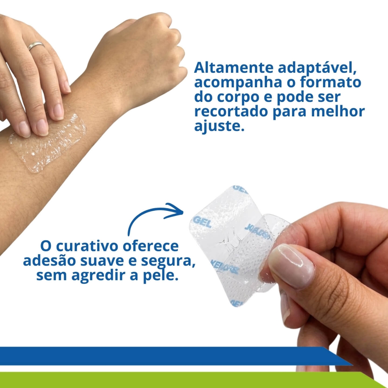 Seu gel de silicone médico promove um ambiente úmido ideal para a regeneração da pele, enquanto a fita mantém adesão suave, conforto e segurança no uso contínuo.