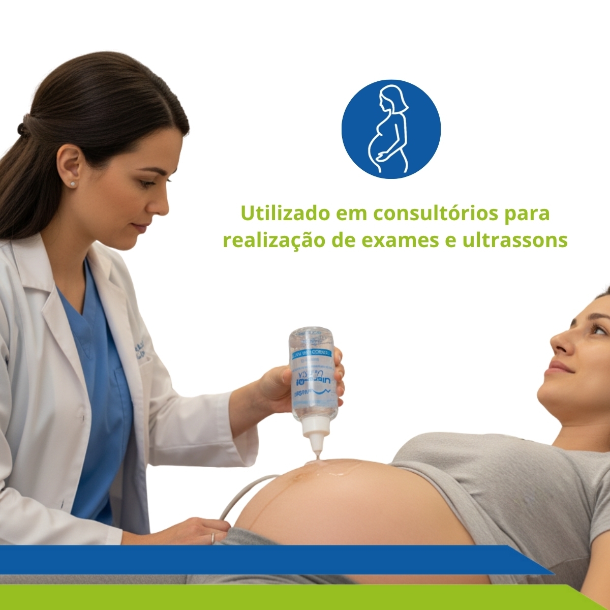 Funciona como meio condutor, essencial para exames e tratamentos com ultrassom, eletrocardiograma e procedimentos dermatológicos.