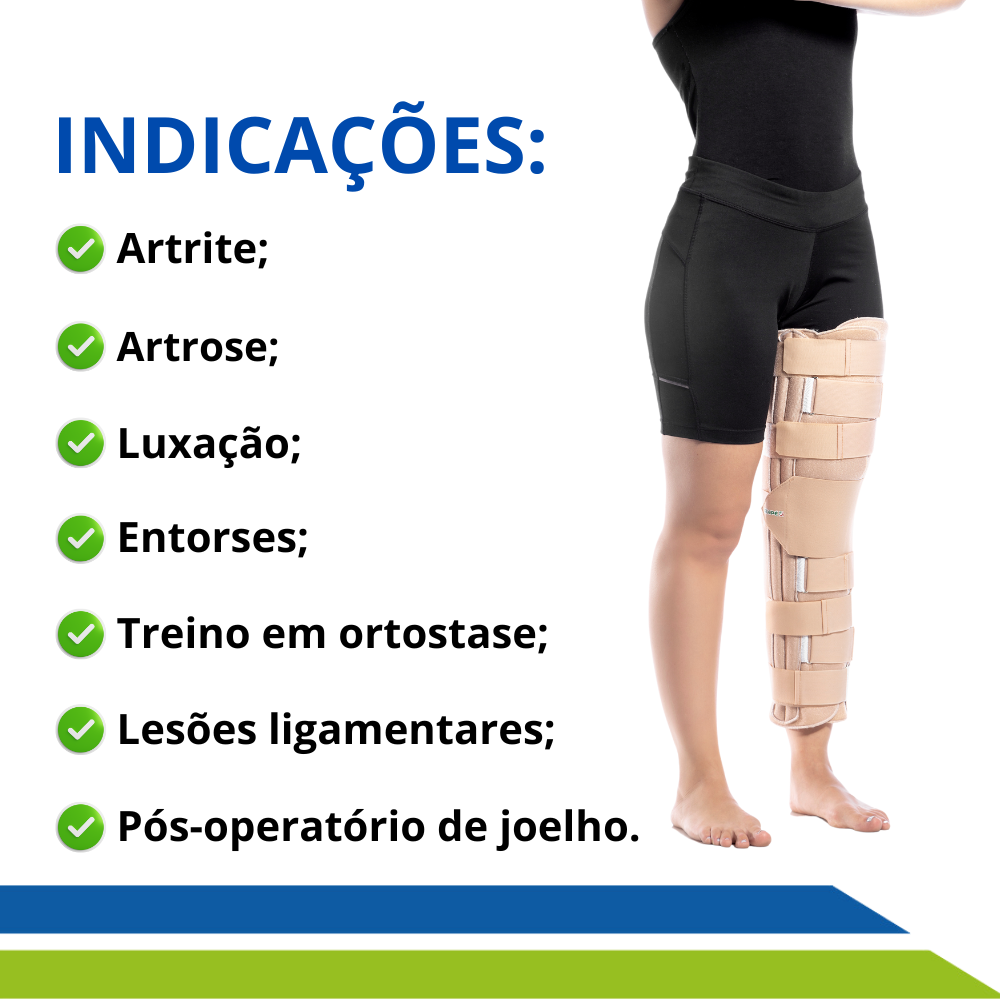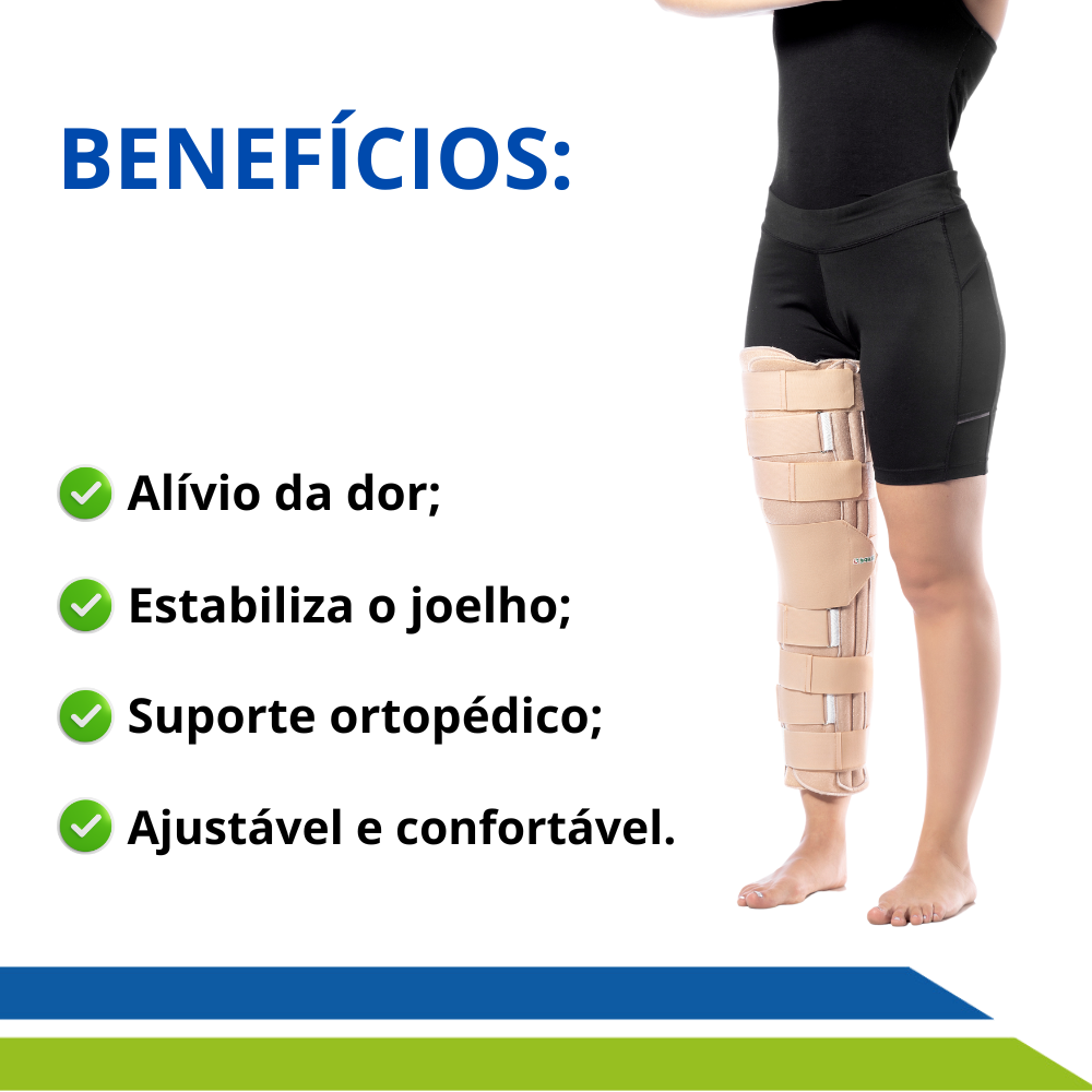 Fabricado com materiais de alta qualidade e sistema de ajuste regulável, o imobilizador mantém o joelho na posição adequada, garantindo uma recuperação segura.