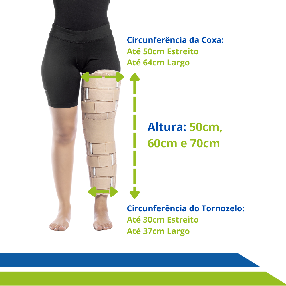 Meça a circunferência da coxa e do tornozelo, e compare com a tabela de medidas.