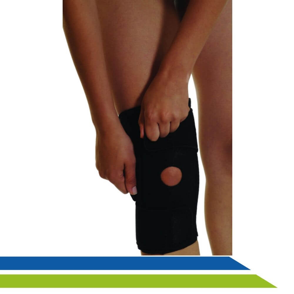 Joelheira Ajustável com Suporte para Rótula e Reforço Lateral Dilepé é confeccionada em neoprene e é indicada para tratamento de tendinites quadricipital patelar, instabilidades na rótula e para prevenir lesões esportivas.