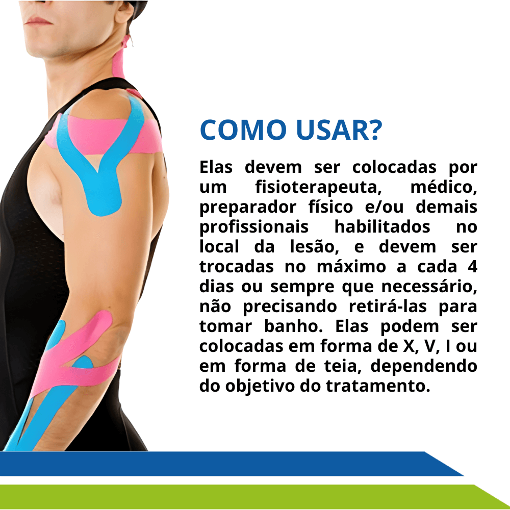 A Fita de Kinésio deve ser aplicada por profissional habilitado (fisioterapeuta, médico, educador físico etc.).