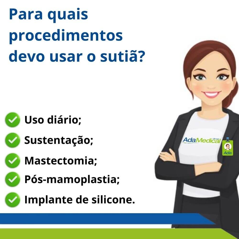 Em cirurgias nas mamas, como mamoplastias e implantes de silicone, recomenda-se o uso de sutiãs pós-cirúrgicos, com bojo pré-moldado para tornar os seios mais modelados com menos compressão na região da mama, ao passo que mantém as suturas firmes e acelera o processo de cicatrização.