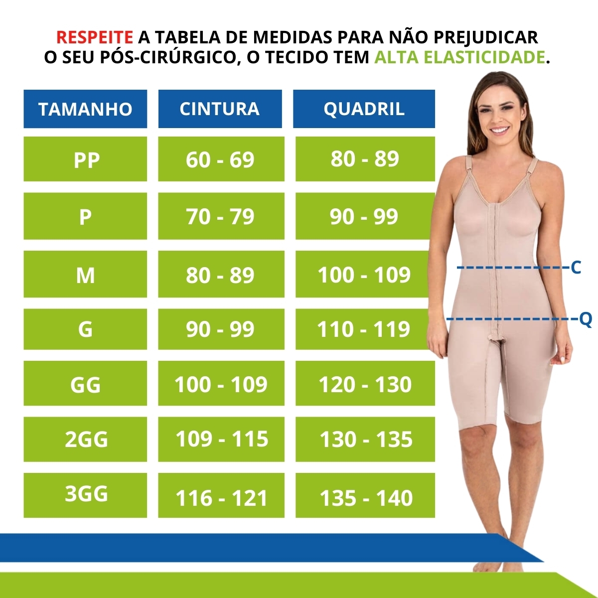 A cinta Pós-Cirúrgica completa com reforço e bojo pré-moldado é ideal para intervenções abdominais e lipoaspiração de culotes, pois, ajuda a manter a firmeza da pele, melhora a postura e também age como redutora de medidas sendo uma cinta modeladora. É importante lembrar que a cinta não deve ser comprada de tamanhos menores ao qual é adequado ao seu corpo, porque ela pode comprimir os órgãos e dificultar a recuperação.