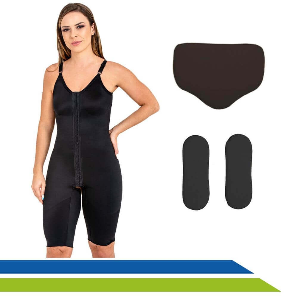Cinta Pós-Cirúrgica Completa com Reforço e Busto Pré-Moldado, indicado para Cirurgias Abdominais, Lipoaspiração de Culotes, Cinta Modeladora e Kit de Almofadas Rígidas.