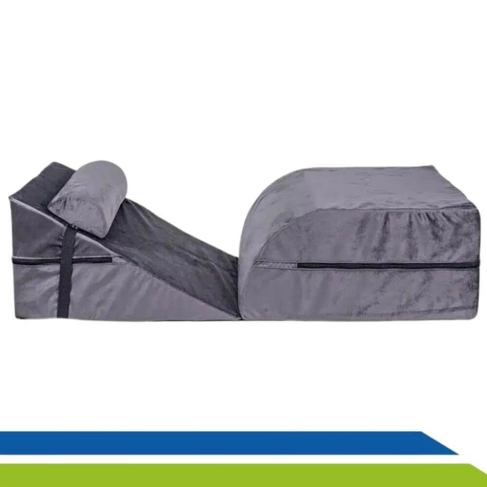 A Cinta Body atua diretamente na compressão e sustentação do corpo, enquanto o kit de almofadas proporciona o posicionamento correto, reduzindo dores, pressão e desconfortos ao sentar ou deitar.