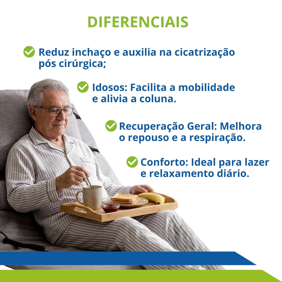 Este kit oferece mais praticidade no dia a dia, ajudando você a se recuperar com mais conforto, estabilidade e tranquilidade.