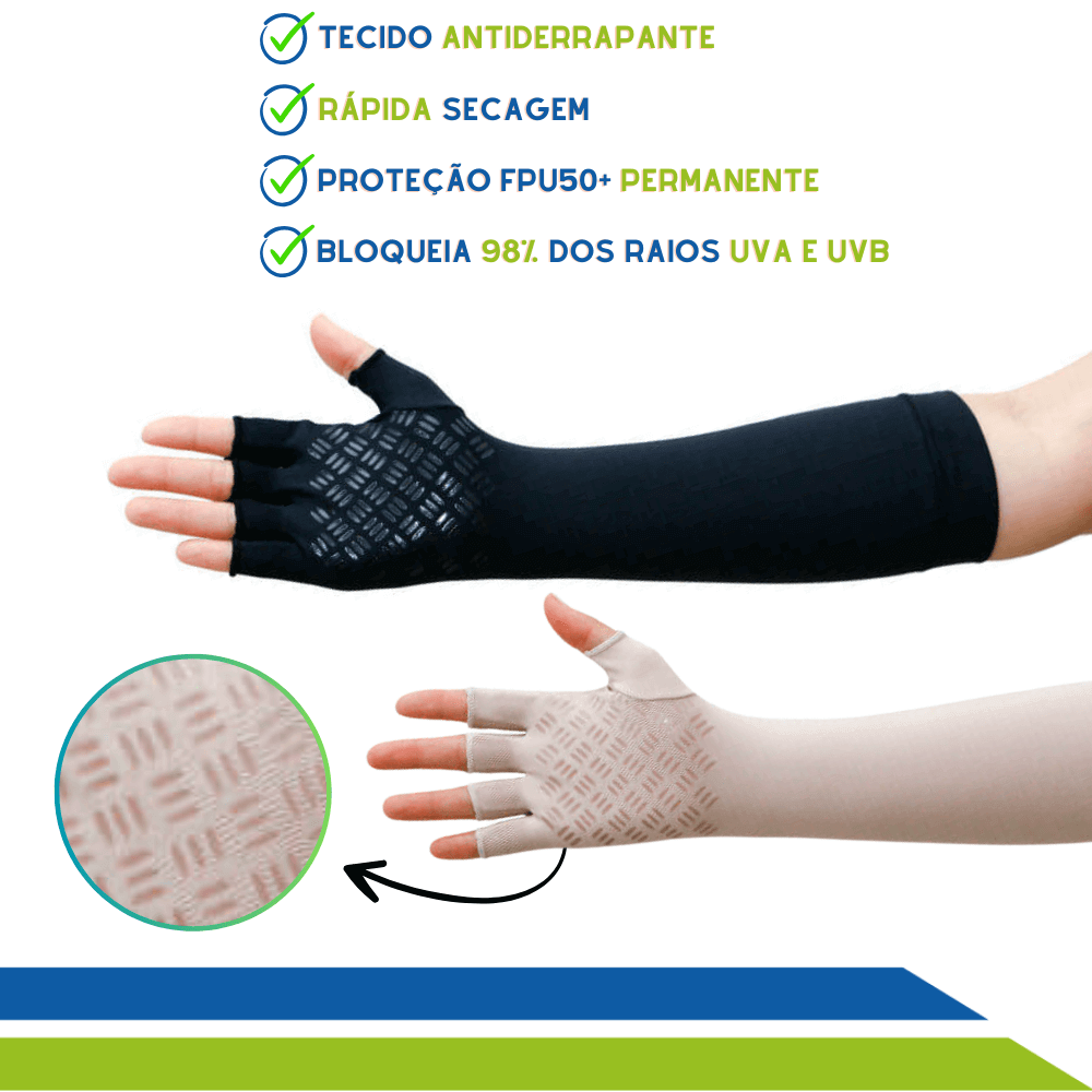 A luva de proteção solar é indicada para retardar o envelhecimento das mãos, evitar manchas e o aparecimento de câncer de pele. Ela possui ação protetora com tecnologia Flambé que não sai durante as lavagens, garantindo que seu produto dure por muito tempo. Com sua maleabilidade é possível dirigir e até praticar esportes com segurança e ter a proteção necessária contra os raios UVA e UVB.