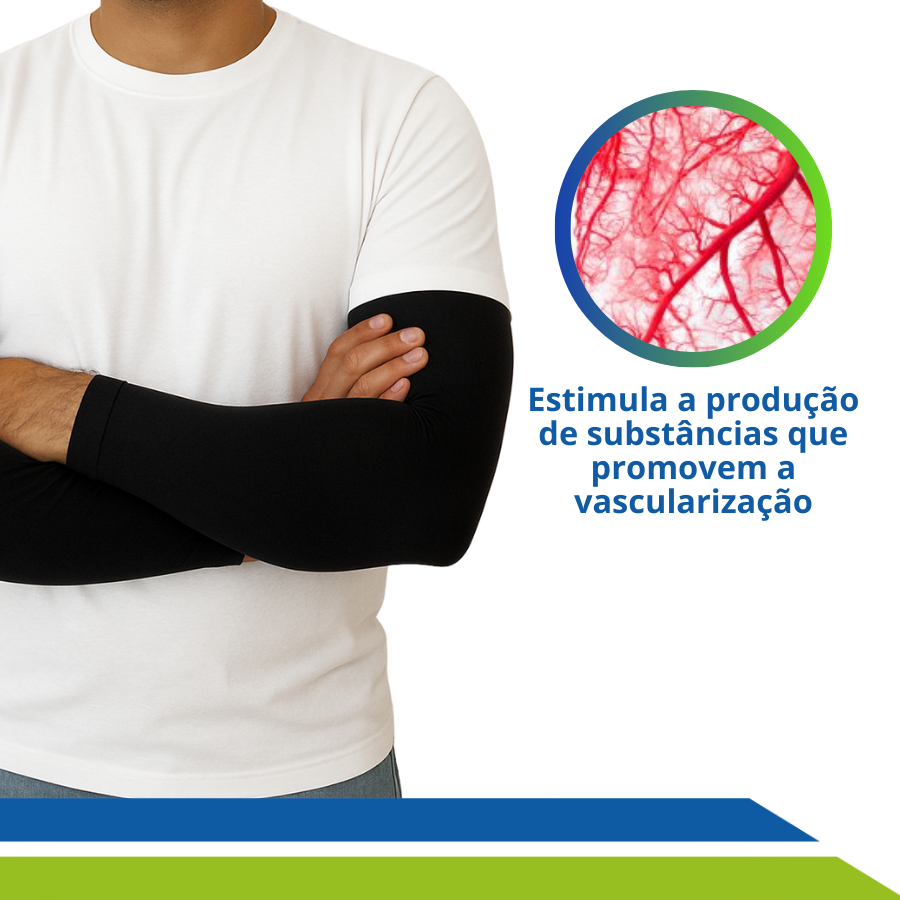 Com isso, o manguito contribui para a regeneração celular, melhora o metabolismo local e potencializa o desempenho físico, sendo ideal para quem busca mais saúde, conforto e performance no dia a dia