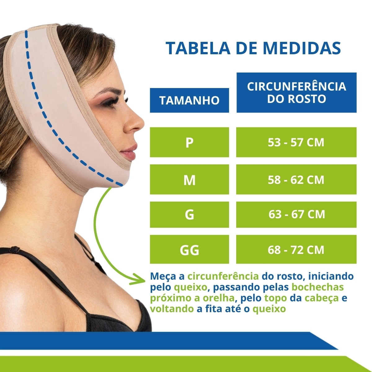 O uso da máscara normalmente é indicado pelos médicos, já que é responsável por reconstruir a aderência da musculatura com o osso e para diminuir o inchaço provocado pela cirurgia, possui fecho em velcro e possibilita o ajuste conforme sua necessidade, não possui costuras evitando marcas na pele.