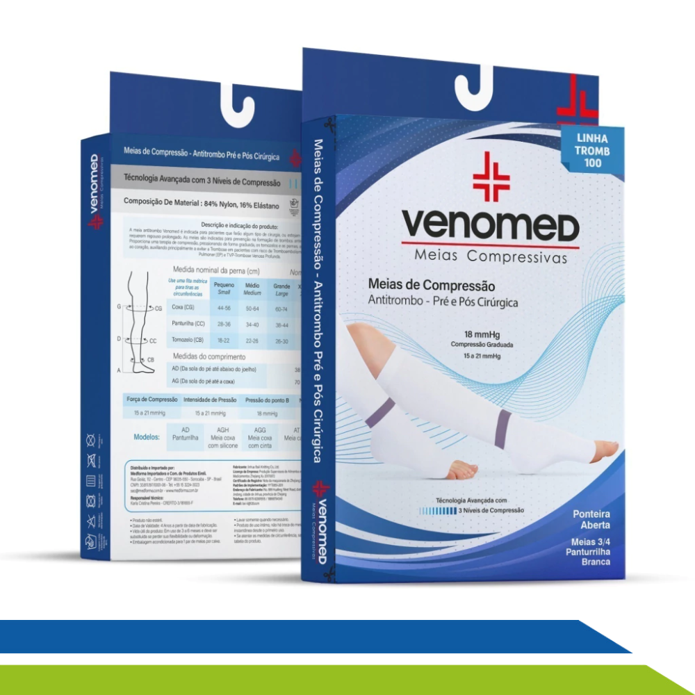 Saiba mais [+]As Meias Antitrombo Venomed são fundamentais para pacientes em pré, intra e pós-operatório, especialmente em cirurgias com duração superior a 2 horas ou em situações que exigem repouso prolongado. Elas ajudam a manter a circulação ativa e reduzem significativamente o risco de complicações graves.