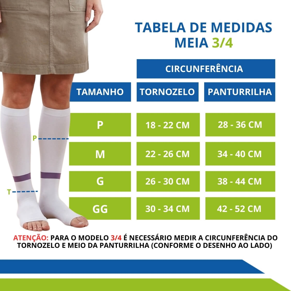 • Conteúdo: 1 par de Meias de Compressão 3/4