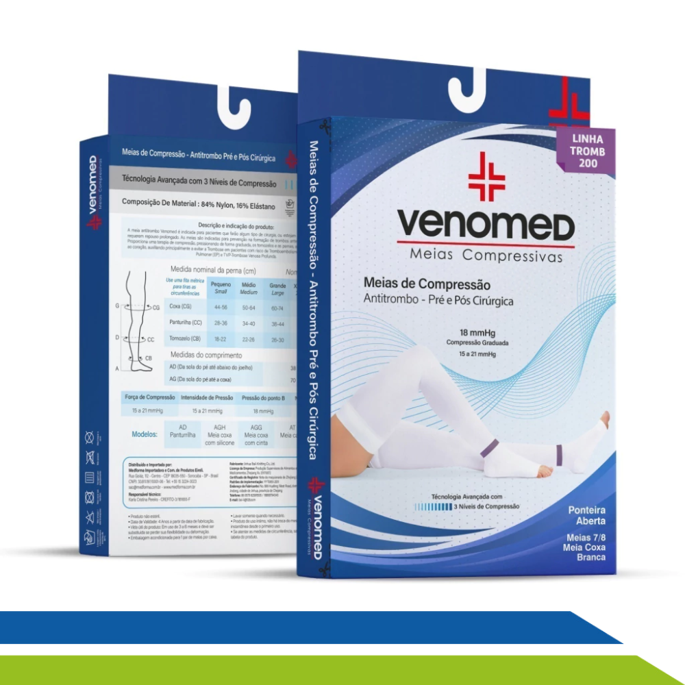 Saiba mais [+]As Meias Antitrombo Venomed são essenciais para pacientes em pré, intra e pós-operatório, principalmente em procedimentos com duração superior a 2 horas ou em situações que exigem repouso prolongado. Elas ajudam a prevenir complicações sérias e garantem uma recuperação mais segura.