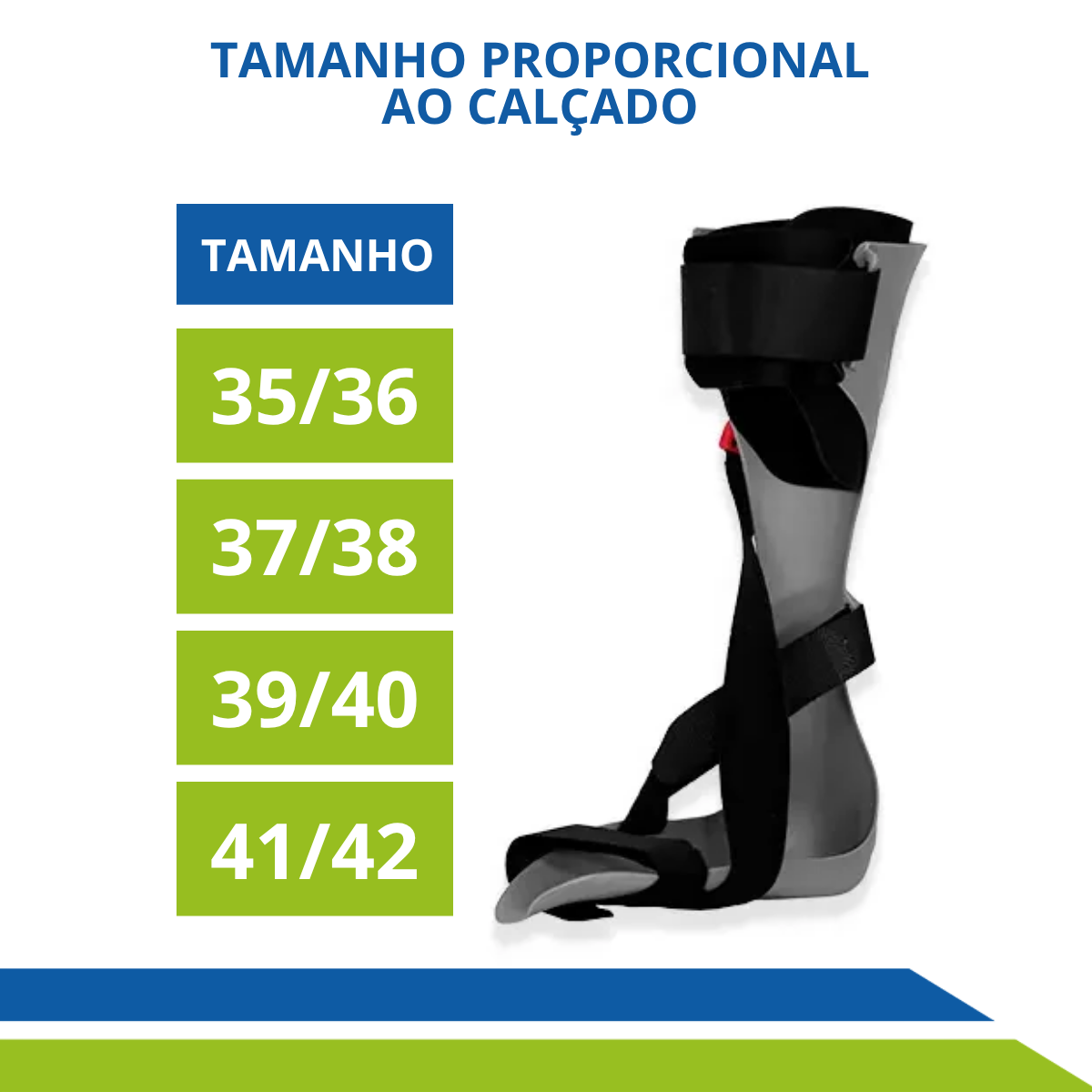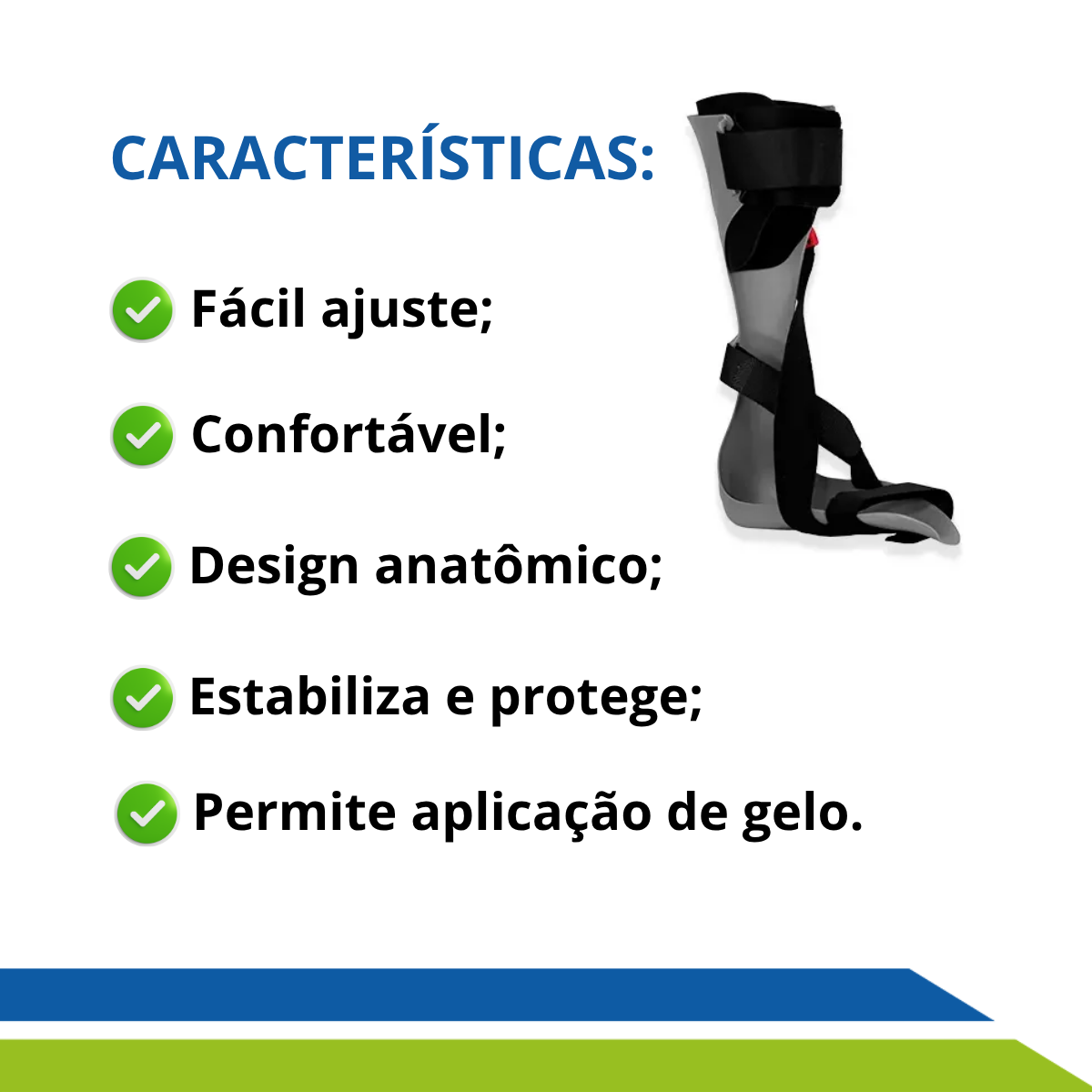 Órtese dinâmica para tornozelo com suporte em fraturas, lesões ligamentares e pós-operatório. Permite aplicação de gelo e oferece estabilidade segura.