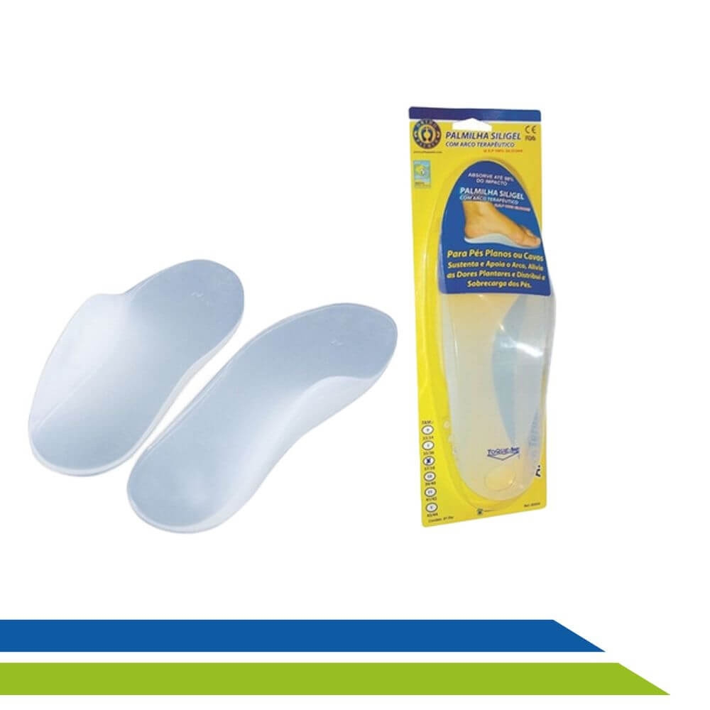 A palmilha de silicone com arco terapêutico é fabricada com Q.S.P. 100% silicone e é indicada para que pessoas com pés planos ou cavos, ciatalgias, entorse de joelhos, tendinite. Agindo de modo que absorve impactos e distribui a carga e os pontos de pressão.