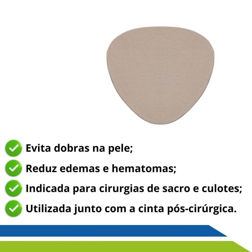 A placa de contenção deve ser utilizada nos pós-cirúrgicos de plástica e lipoaspiração por baixo do modelador na região sacral e para culotes, com objetivo de reduzir edemas e hematomas e, não deixar a cinta dobrar proporcionando uma recuperação mais rápida e saudável. Ela não deixa a peça enrolar ou marcar a pele. Geralmente é, utilizada durante todo o período em que se permanece com a cinta, ou seja, de 1 a 3 meses conforme indicação médica.