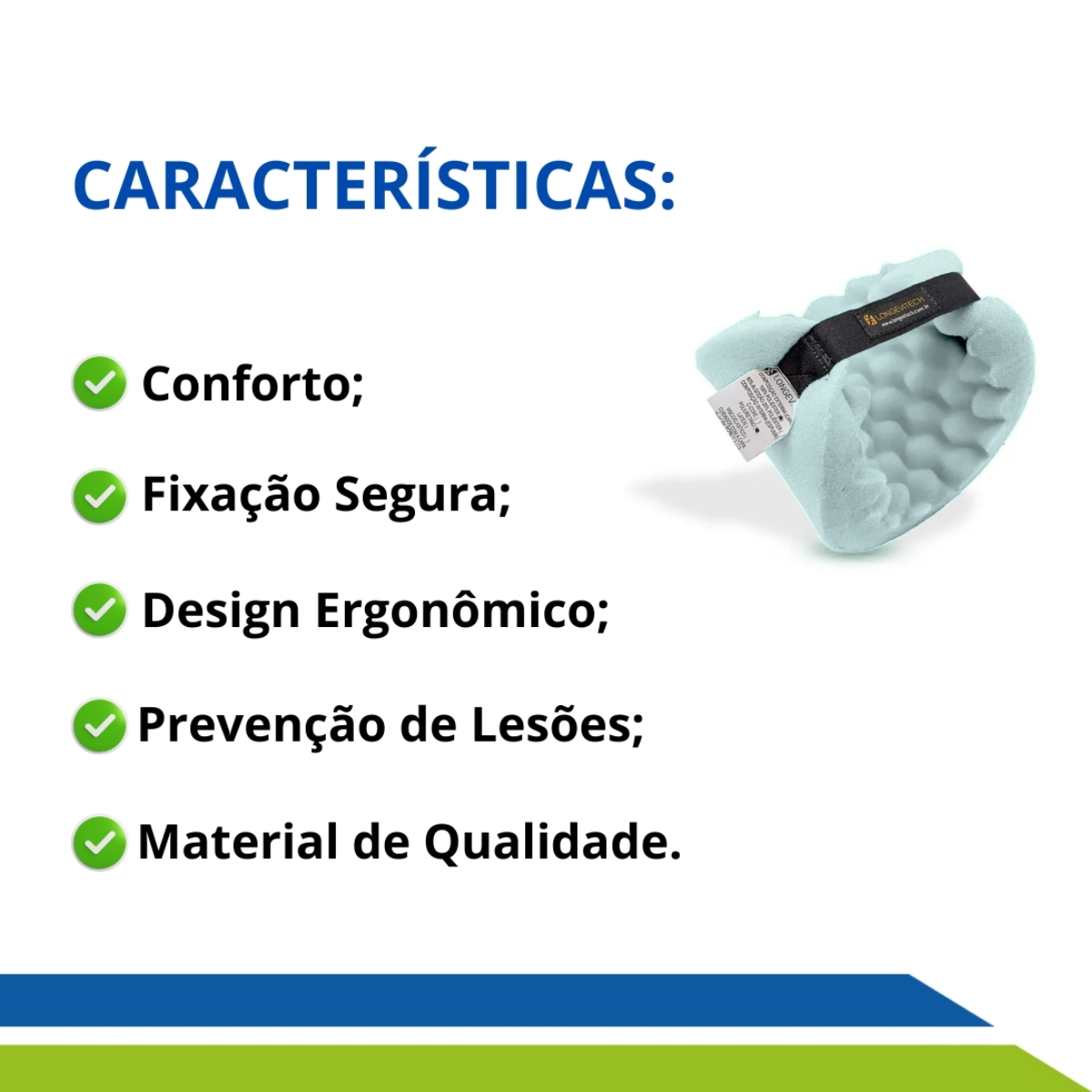 Conta com uma fita de fixação em tecido aderente, garantindo que o protetor permaneça no lugar, evitando deslizamentos e promovendo o ajuste perfeito para o usuário.