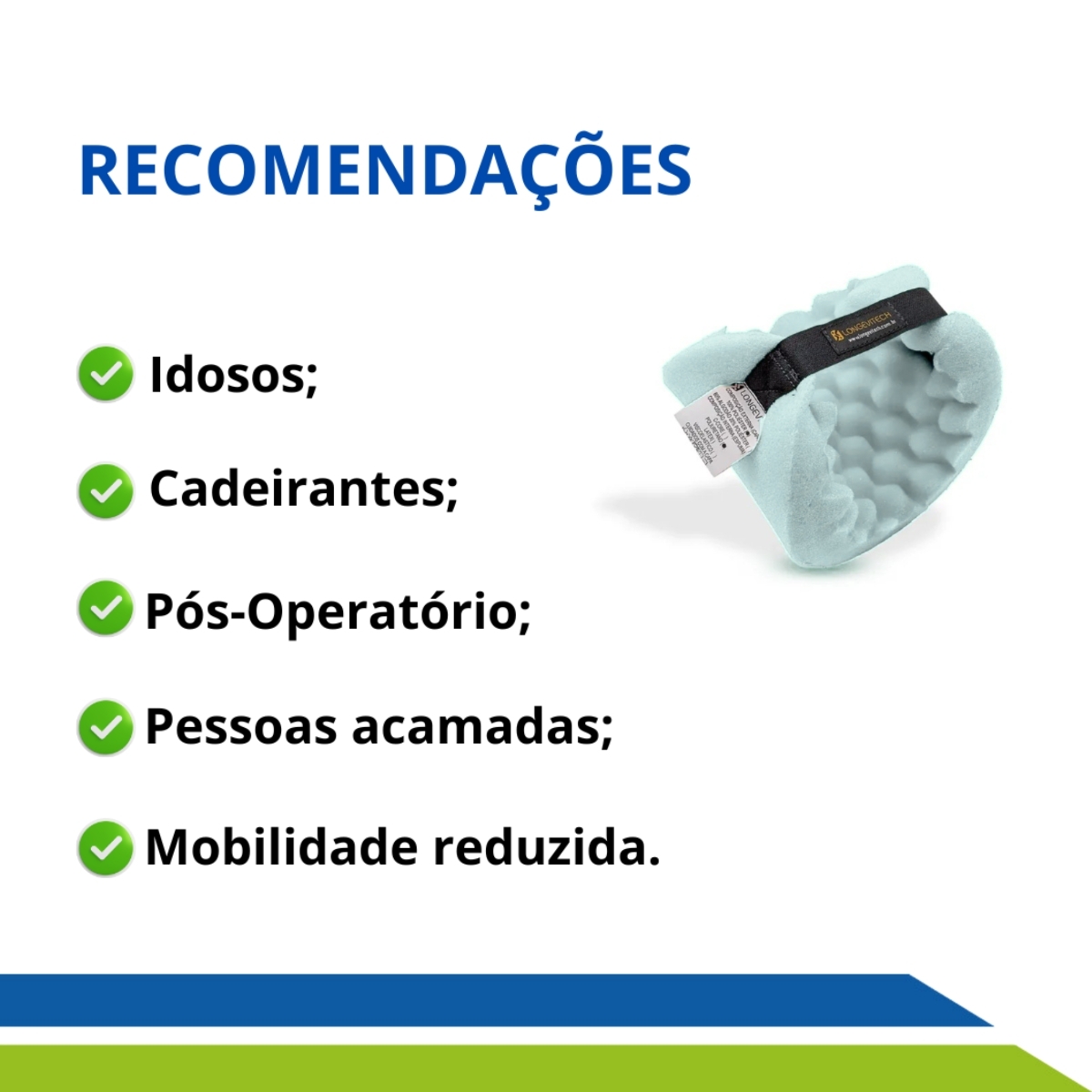 Ele é indicado para ajudar no posicionamento e na prevenção de Ulcerações de pele e pós-operatório.