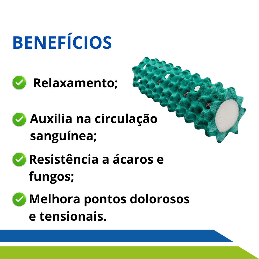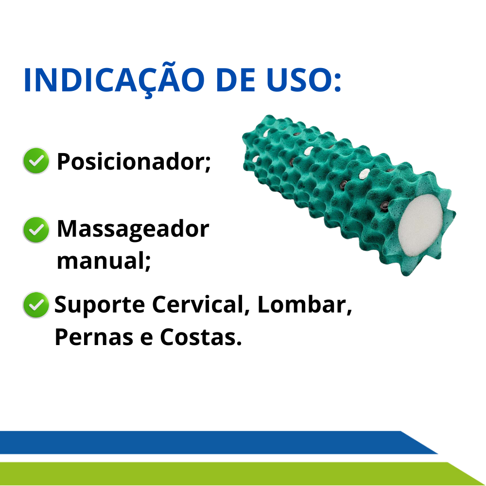 O Rolo Massageador Magnético da Longevitech, possui um design ergonômico, podendo ser utilizado de forma multifuncional, como posicionador, suporte para cervical, lombar, automassagem nas costas, nas pernas ou em qualquer ponto doloroso.