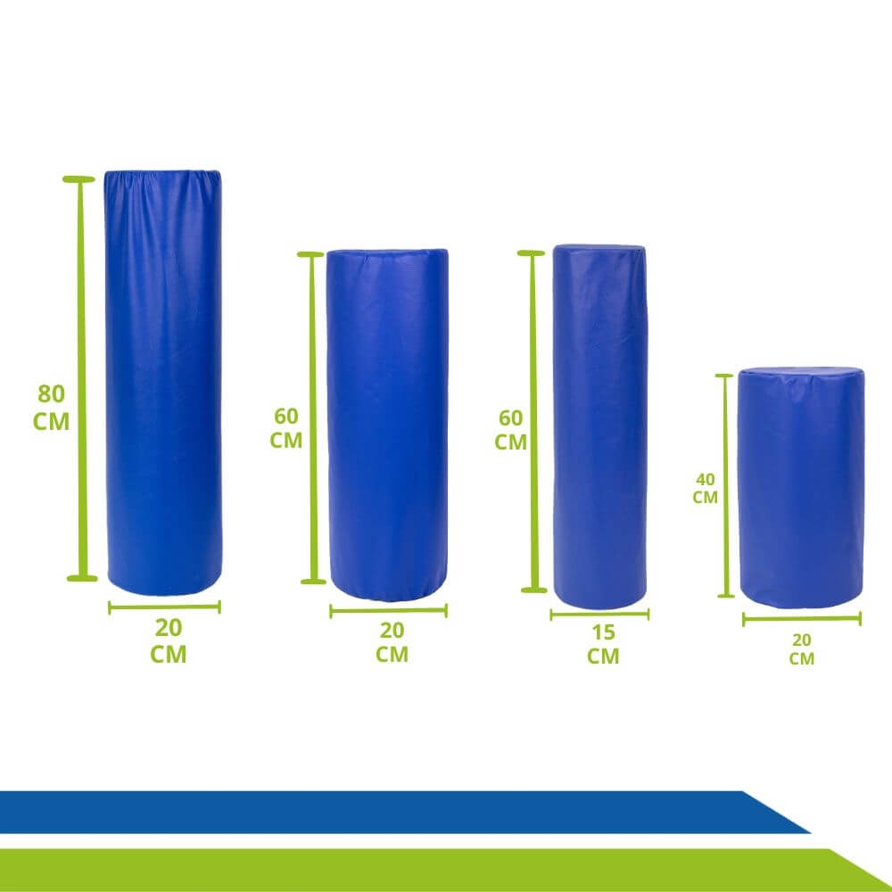 Sua superfície lisa e macia, revestida em tecido 100% poliéster com acabamento em napa azul impermeável, facilita a limpeza e higienização, garantindo praticidade e durabilidade para o dia a dia. Além disso, o rolo possui formato cilíndrico que proporciona adaptabilidade a diferentes partes do corpo.