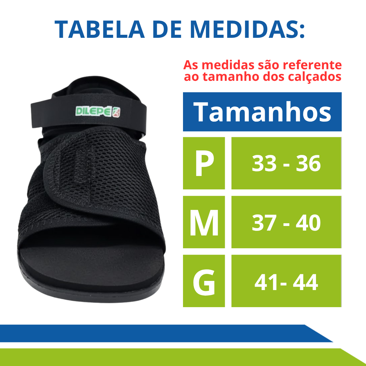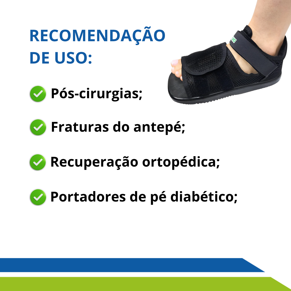 Indicação Médica: Ideal para pós-operatório de hálux valgo e fraturas do antepé;