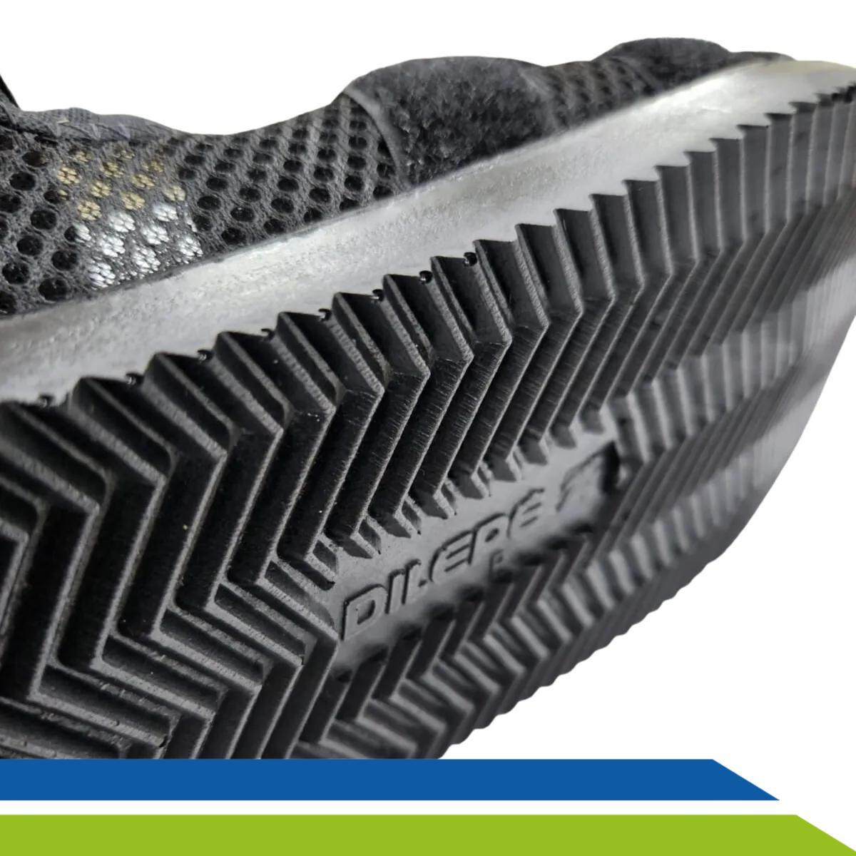 Solado em P.U. Antiderrapante: Segurança ao caminhar e maior durabilidade;