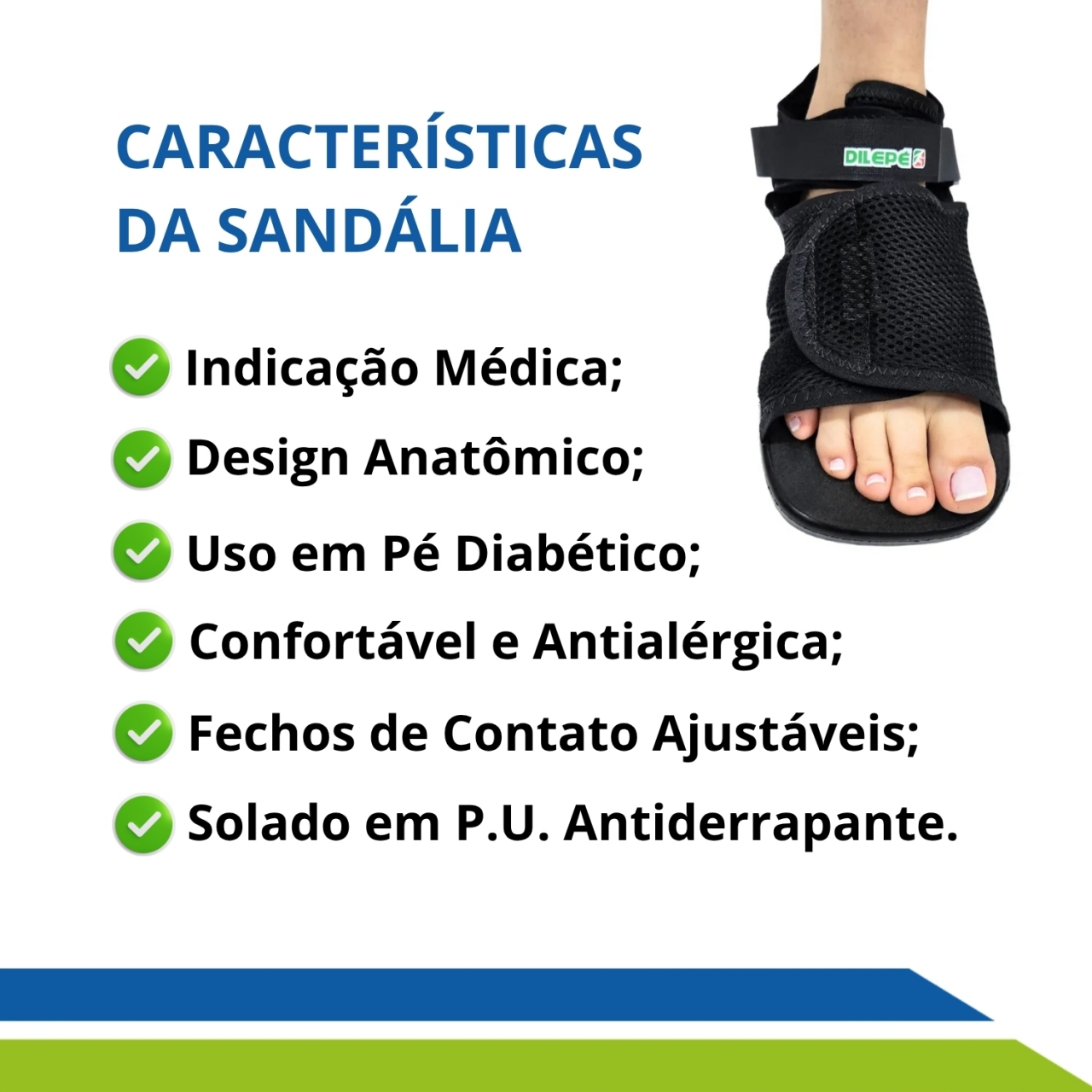 A sandália é indicada para uso na recuperação de cirurgias de joanete e pé diabético, protegendo a área traumatizada e dando melhor apoio ao caminhar, amenizando dores ocasionadas por este movimento.