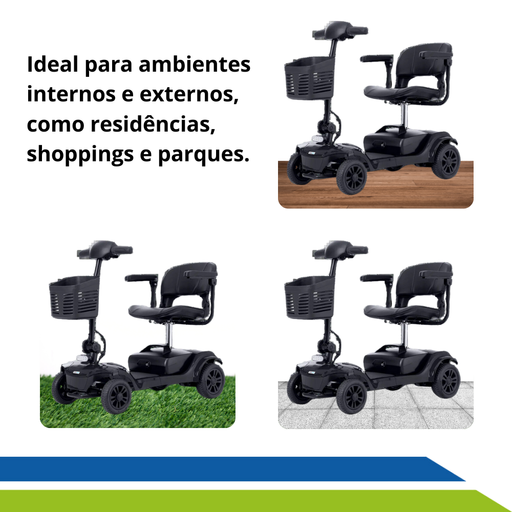 - Mobilidade Prática: Ideal para ambientes internos e externos, como residências, shoppings e parques.