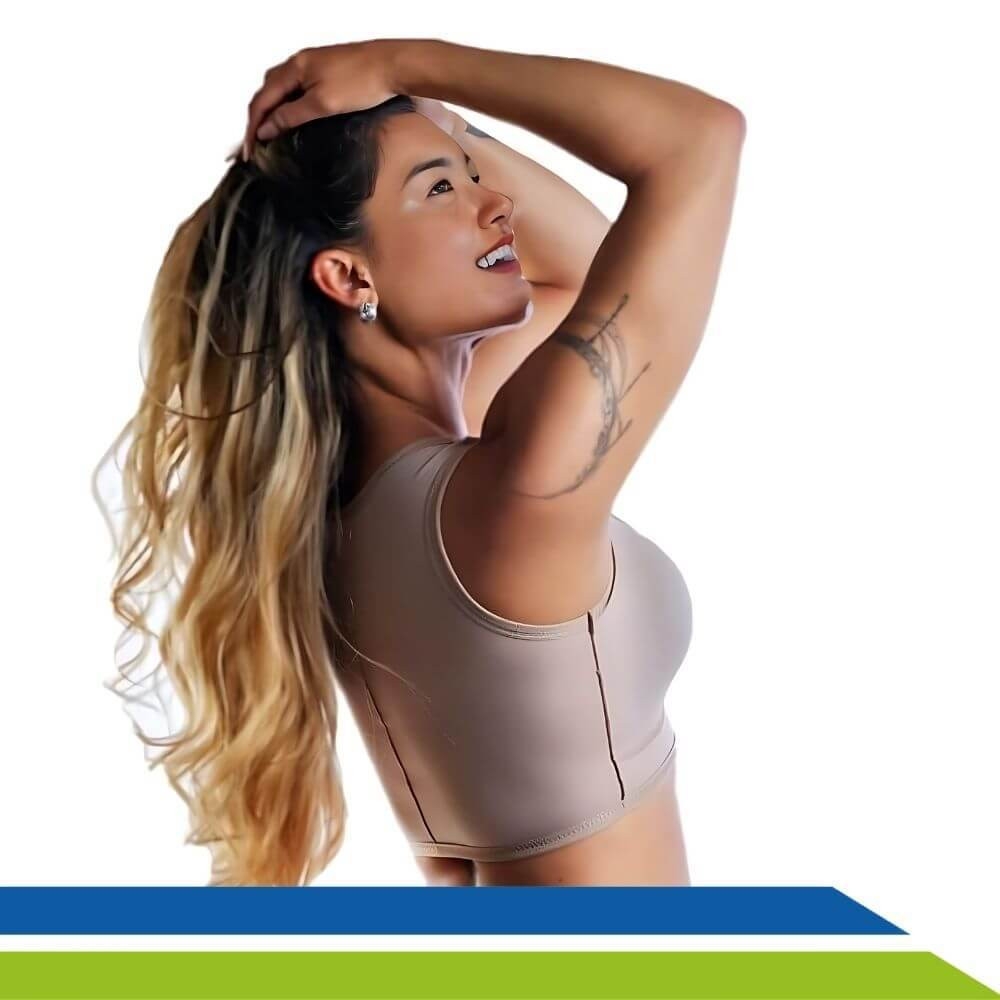Sua alça regata oferece cobertura adicional e suporte, sendo ideal para proporcionar segurança e estabilidade aos seios e ao tórax. Além disso, ele é confeccionado em tecido Emana, oferecendo um toque suave, agradável e respirável, proporcionando bem-estar durante todo o processo Pós-Operatório.