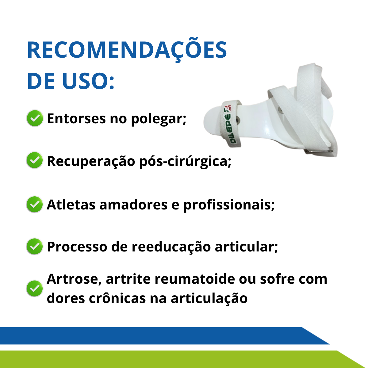 Desenvolvida com PVC anatômico e ajustável, essa órtese oferece imobilização precisa do polegar, garantindo estabilidade e alívio imediato da dor sem limitar totalmente os movimentos da mão. Seu design leve e respirável proporciona conforto durante o uso prolongado, seja no dia a dia ou durante o repouso.